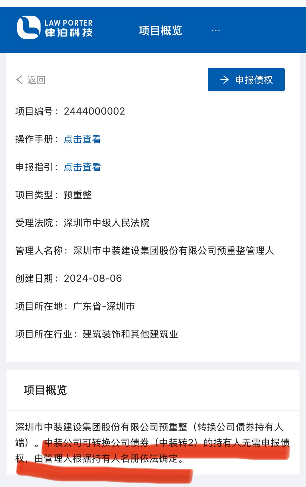 中装公司可转换公司债券(中装转2(127033))的持有人建议在“律泊”