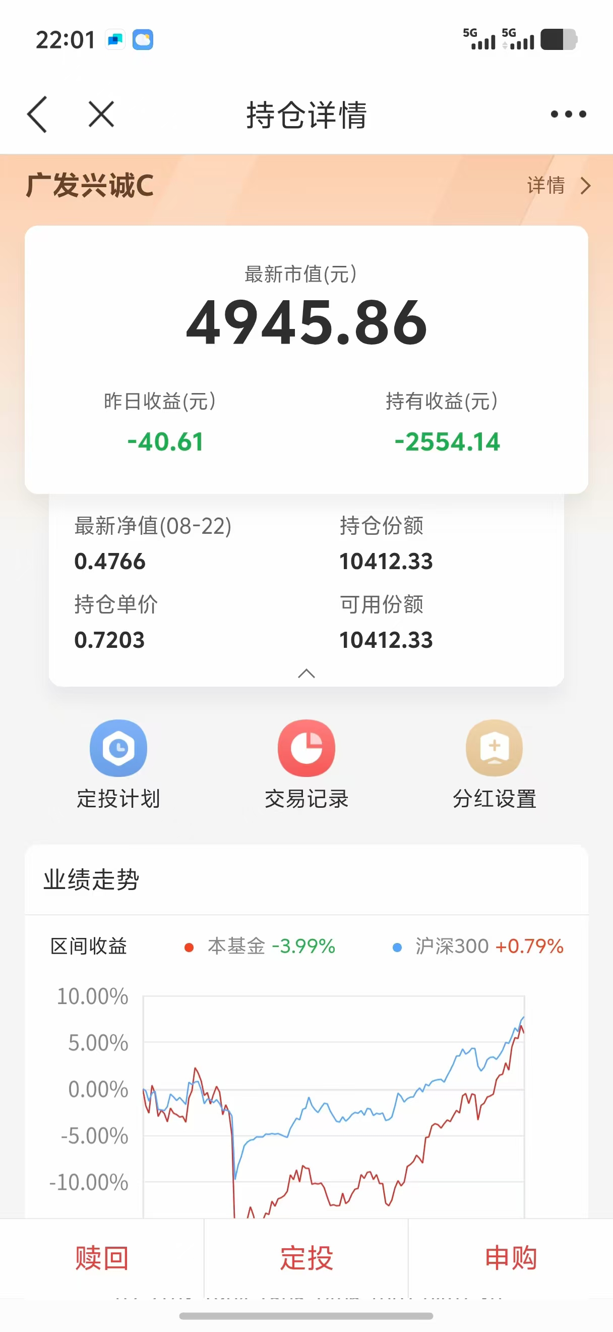 大家可以清楚地看到,持有收益率 -36.4%!总亏损 -2554.14元。而同期沪深300指数还是红的。