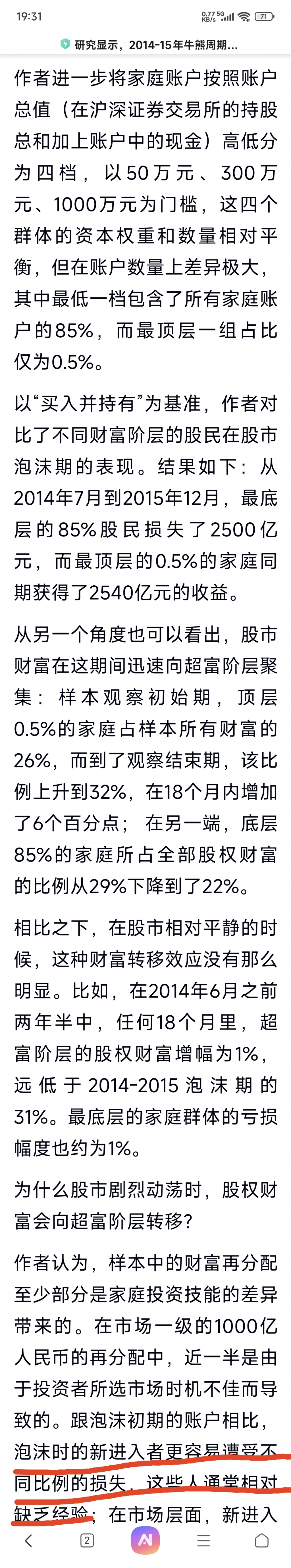 中散熊市牛市后赚钱变成大散,亏钱的变成了小散户这是一篇严谨的学术论文,我再发一遍全文。