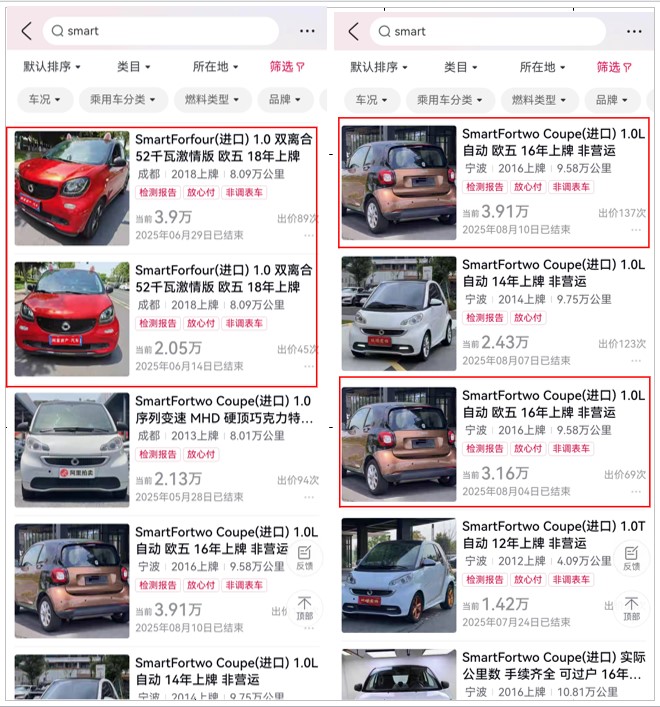 随机点开页面推送,是一辆Smart,起拍价是非常诱人的1块钱。