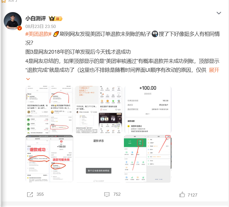 今天发现好多人都说自己在美团上退款没成功,主要三个问题:显示退款成功但实际没给退、退款多年后还显示在审核、团购到期没退款。
