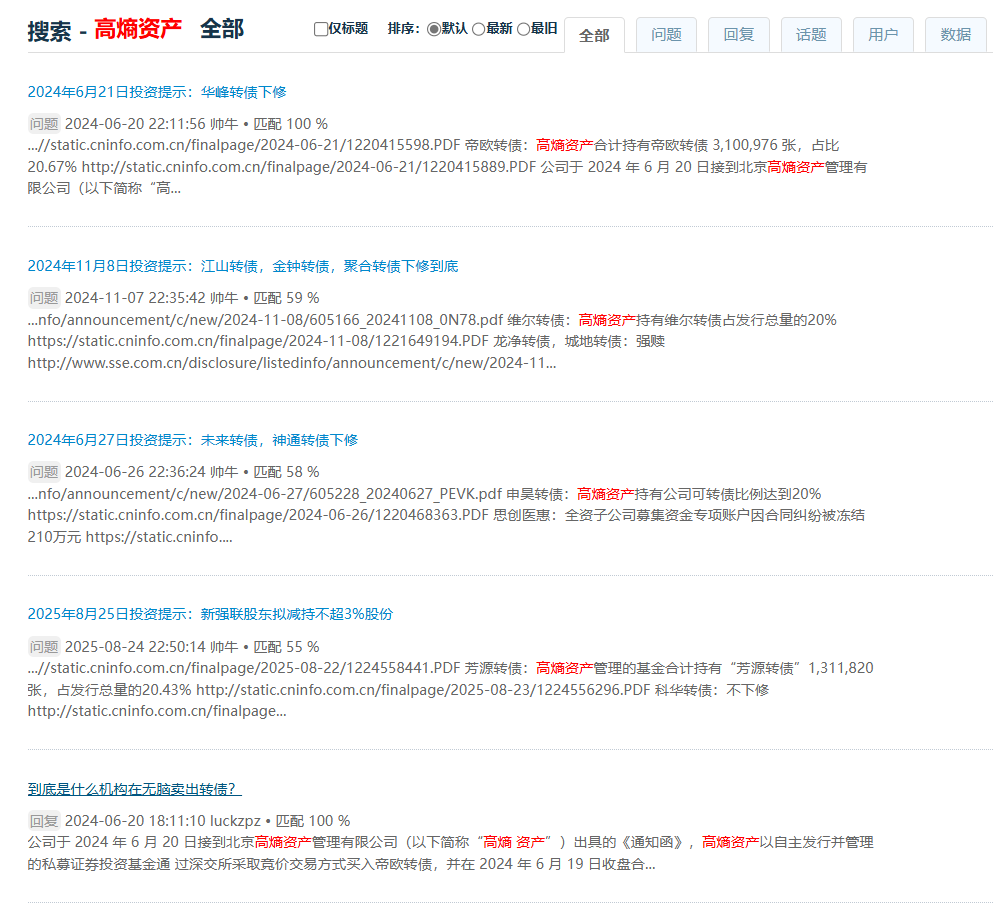 芳源转债:高熵资产管理的基金合计持有“芳源转债”1,311,820 张,占发行总量的20.43%