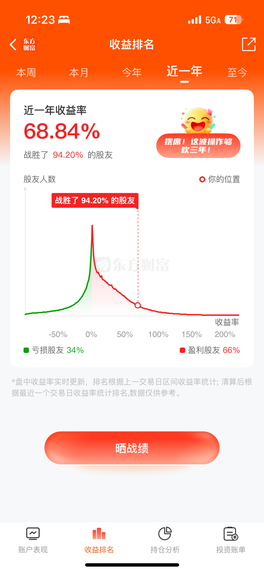 所以实际上,51%更可能是跑赢了99%的股友