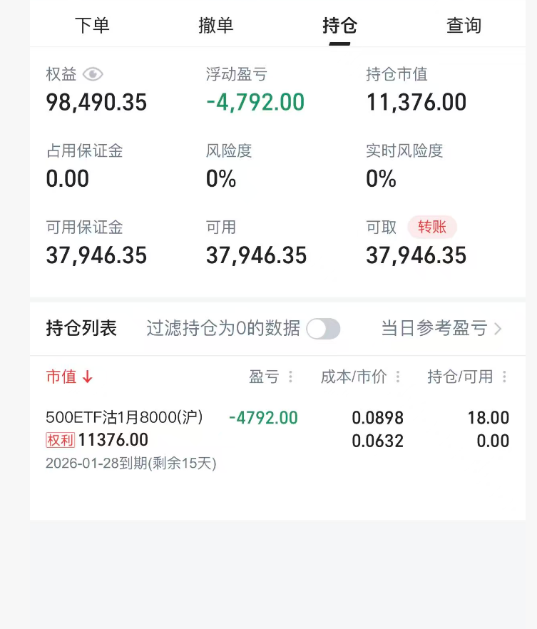 3、自己喜欢炒股那种补仓降低成本的做法,在期权里面是绝不能做的。在正确的方向上能赚小钱,在错误的方向上会扰乱情绪,直至崩溃。