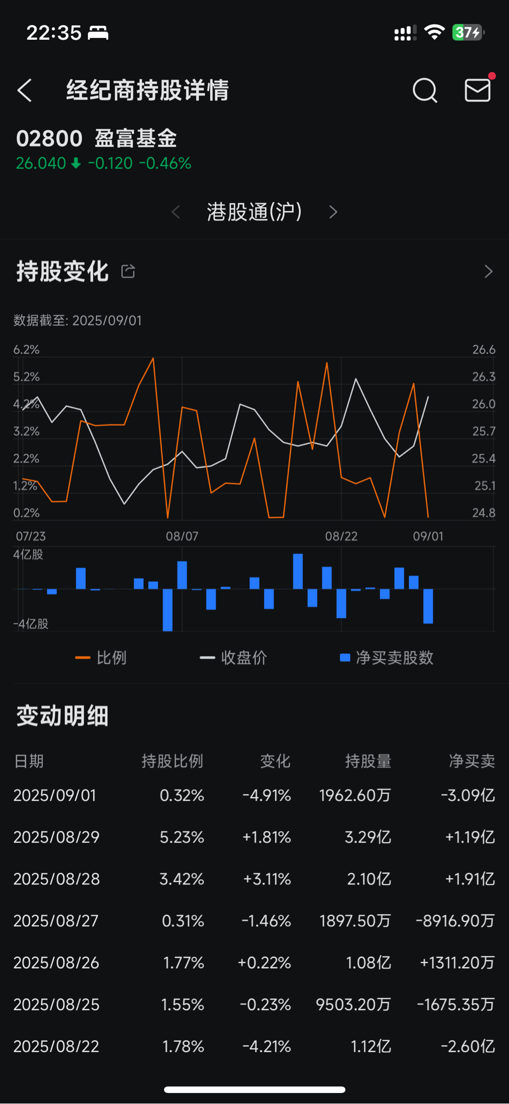 我举几个典型日期,25年你说改了,好24年,24年9月2日,盈富放大到184亿,当天及前后一天汇率是正常范围。24年8月8日是178亿,汇率也是正常范围。还有24年3月22日等等,每个盈富放量的日子,大部分汇率波动就是千分一...