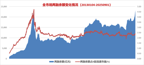 9月1日,A股两融余额已经达到了22969.91亿元,成功超越2015 年 6 月 18 日创下的 2.27 万亿元历史峰值,创下全新纪录。两融余额跨越十年周期重回2万亿元关口,市场信心与资金热情形成共振,为A股注入强劲动能。这一数据的攀升,标志着市场资金的活跃度和投资者的信心正处于高位。