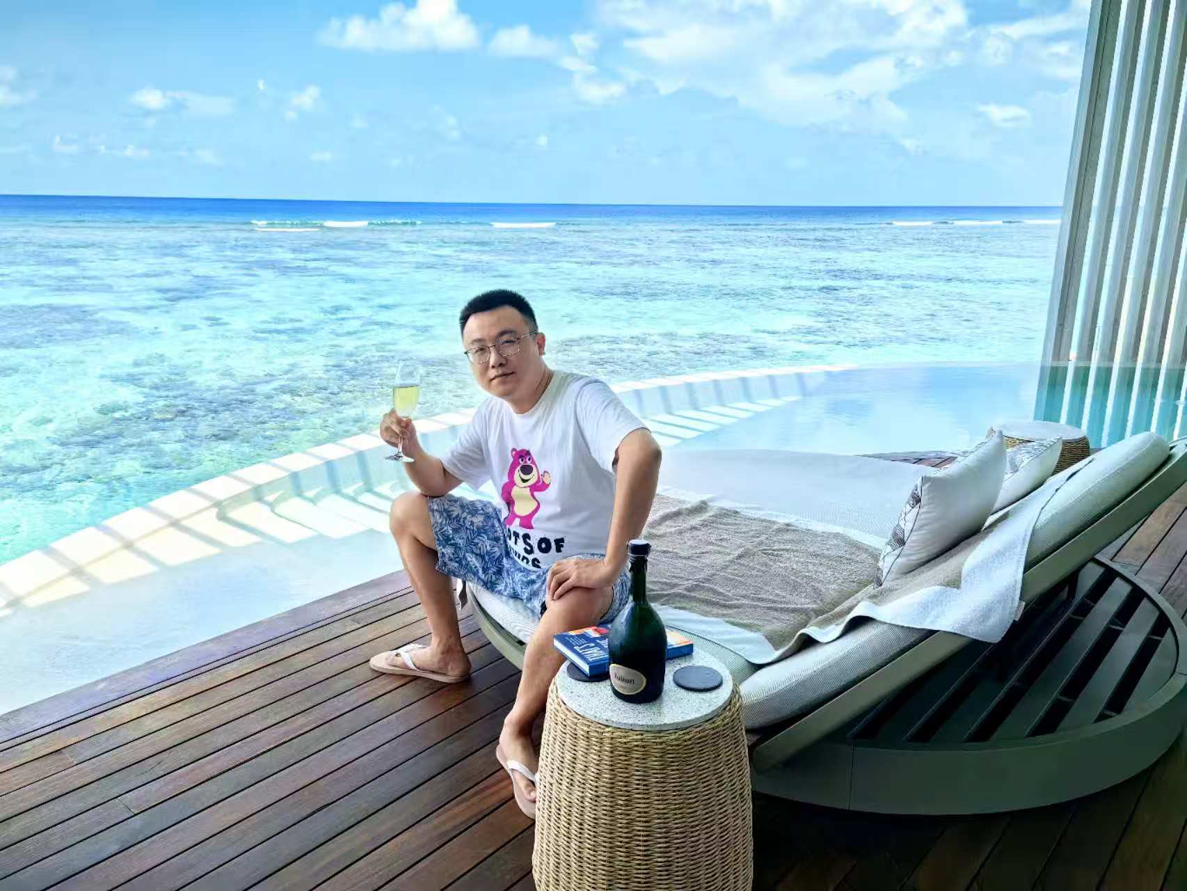 今天 ip马尔代夫 又要假装有钱人了。 管家给的惊喜~~~这一趟安排的豪华游艇只有我和老婆两个乘客,体验了一下私人游艇的感觉。 非常不错,船很高视野很好,配备了一个美女服务员,可乐加冰管够,哈哈。老婆可以换一下了