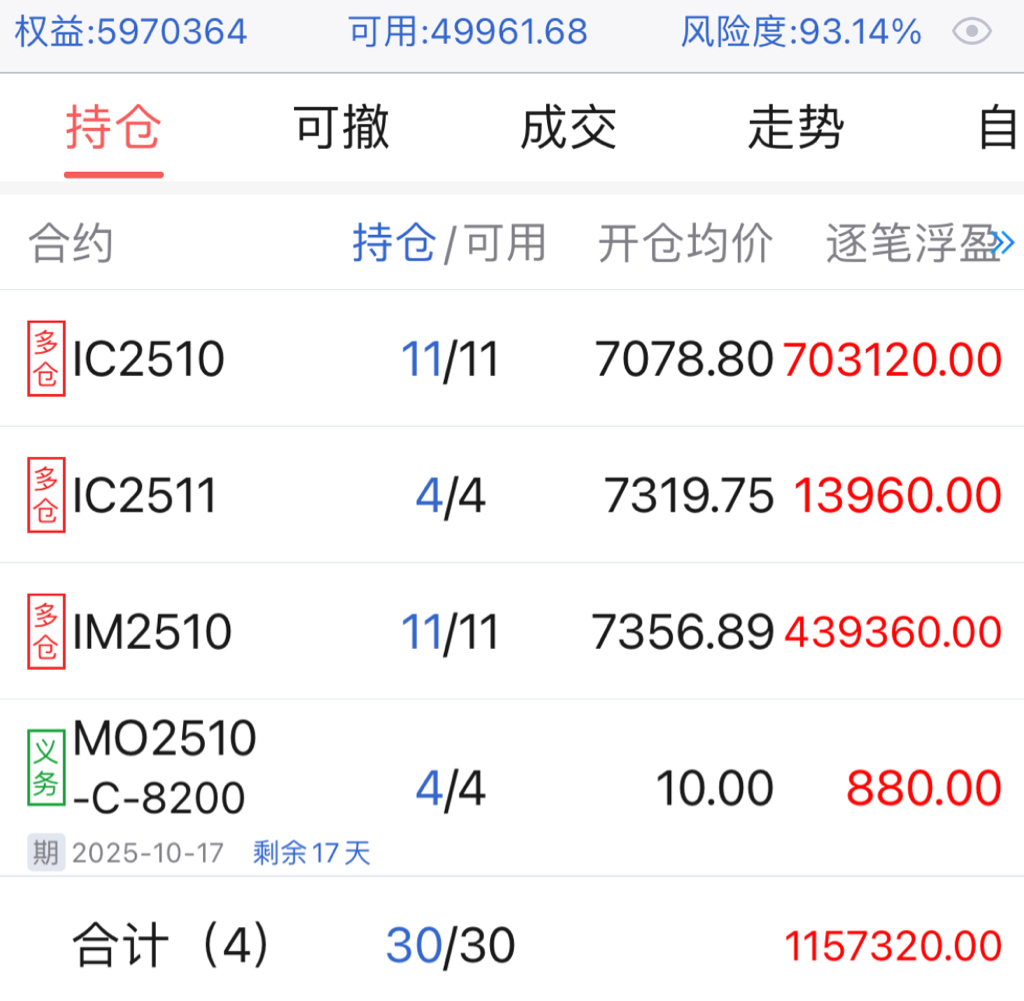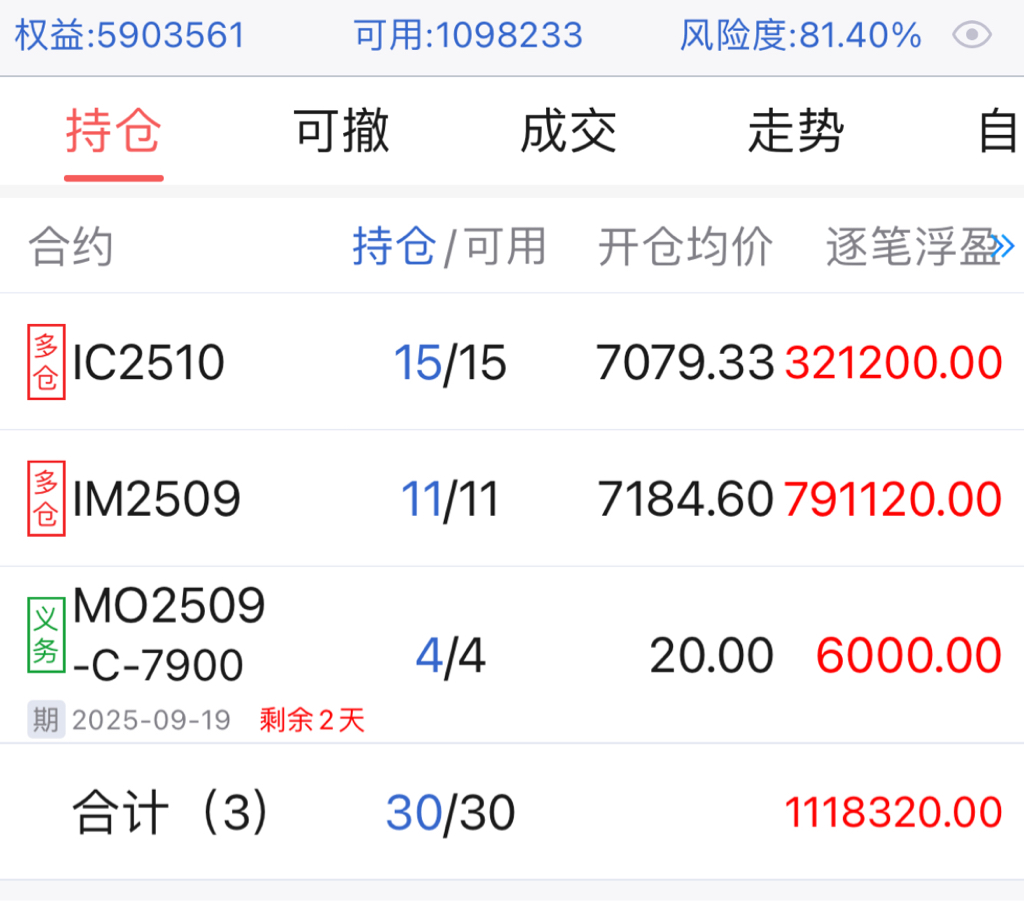 没有5000万以上资产,你也不敢开这么多多仓啊,有钱人。