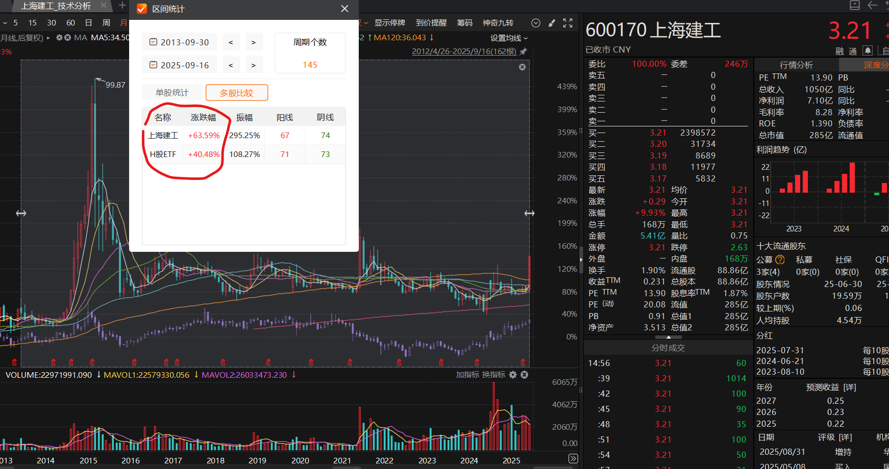 从13年9月16日开始算,12年过去了,上海建工涨幅60%多,国企指数ETF涨幅40%,上海建工还跑赢国企ETF 20%多涨幅呢