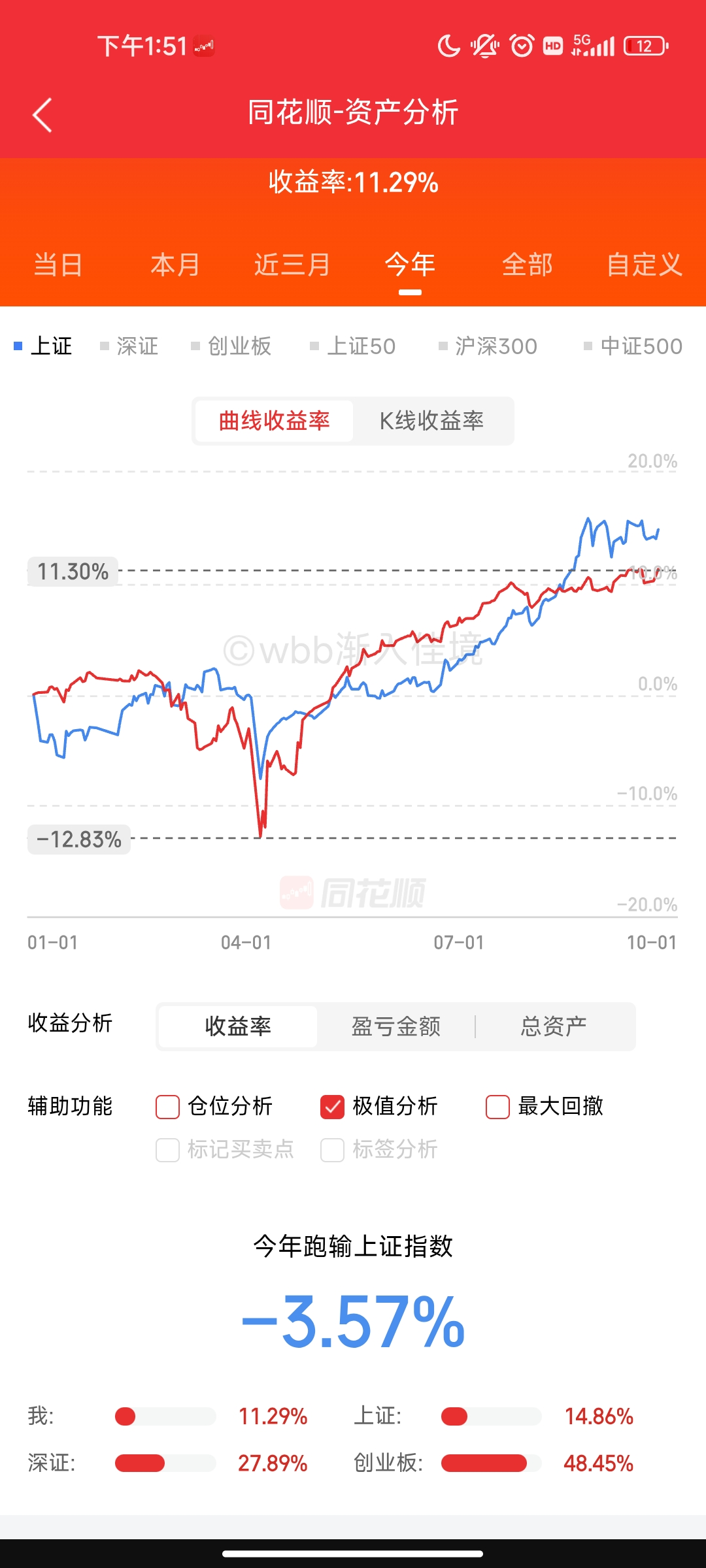 看了自己8-13某贴里的回复,当时20%,对标的9个主要指数的均幅13%,跑赢7%。