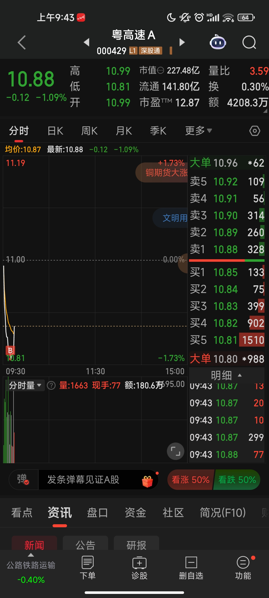- 板块整体表现:图片底部显示“公路铁路运输 -0.11%”,板块整体表现疲软。个股的独立行情能否持续,也需要观察板块能否止跌企稳,形成共振。
