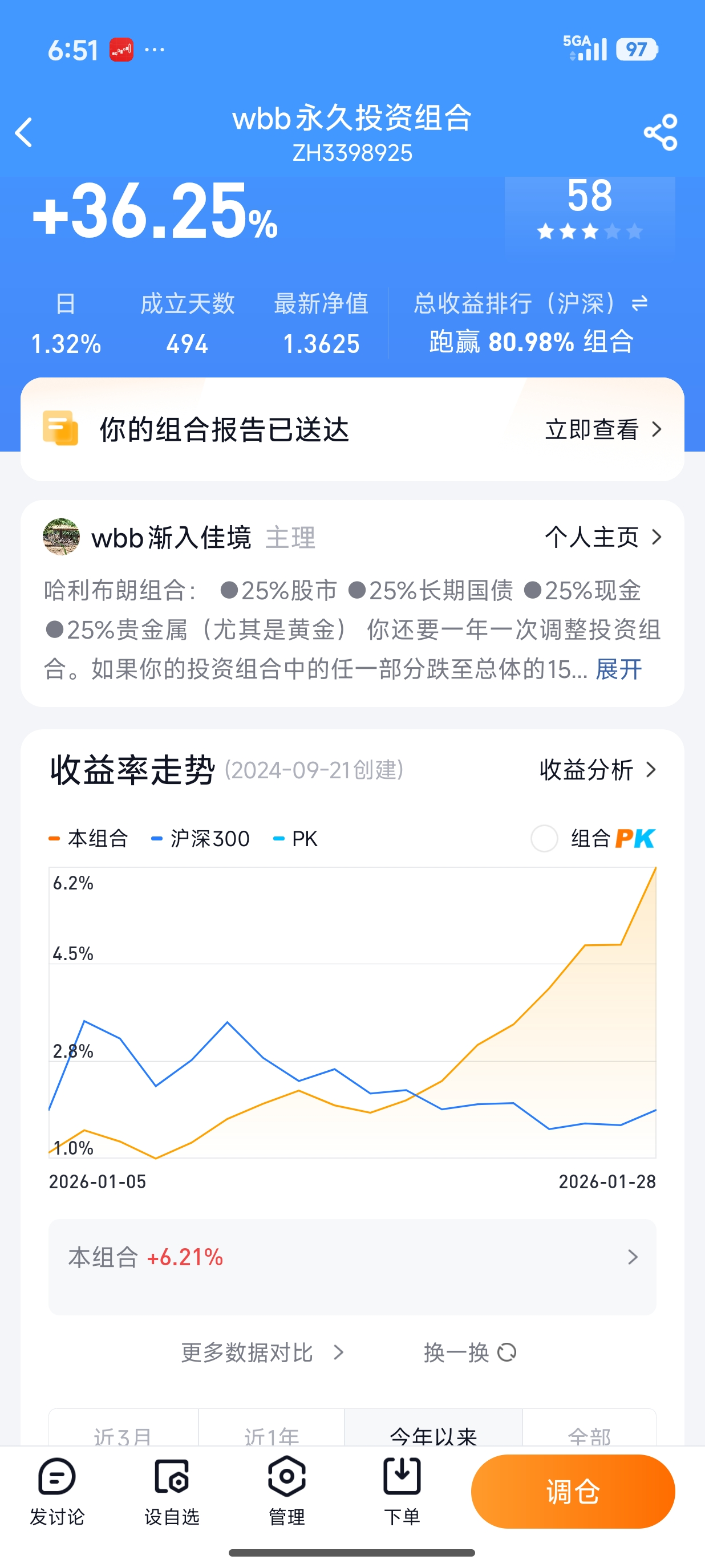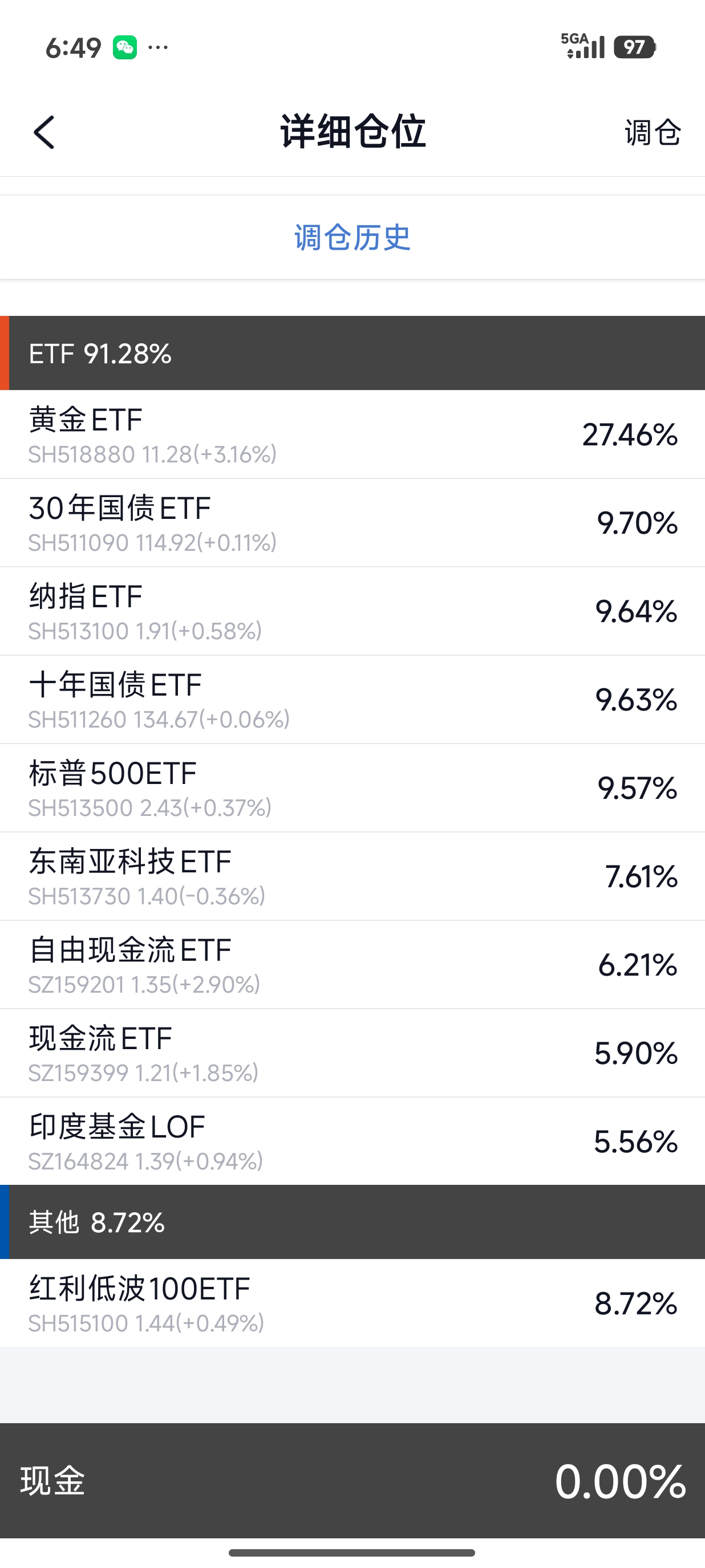 现金25%没有必要长期维持这个比例,如果遇到补仓机会,可以减少现金比例。