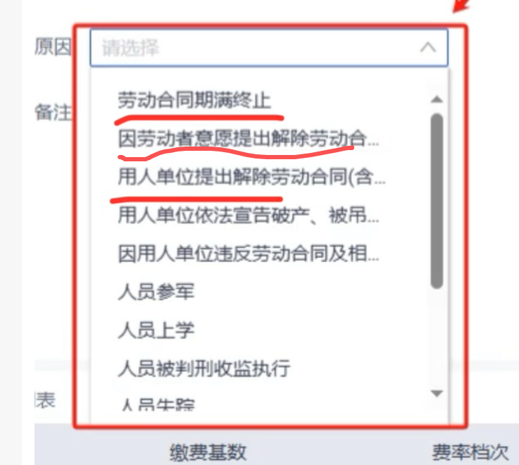 这个在操作社保减员时系统里可以清晰选择,一般单位hr或者会计会知道的。