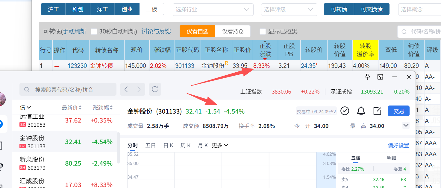 您好,看您的描述里是“点击手动刷新”,大概是几点几分点击的还方便说明一下么?因为从图片上看“30秒自动刷新”您没有勾选。---已经开盘了,严重的事,页面上其他债券刷新数据更新了,金钟转债还是昨天的,(我只发现这一条数据异常,当时页面上别的数据是否异常不清楚。但我关注的另外几条数据已经更新了,这显然不应该是浏览器缓存或是网络原因)