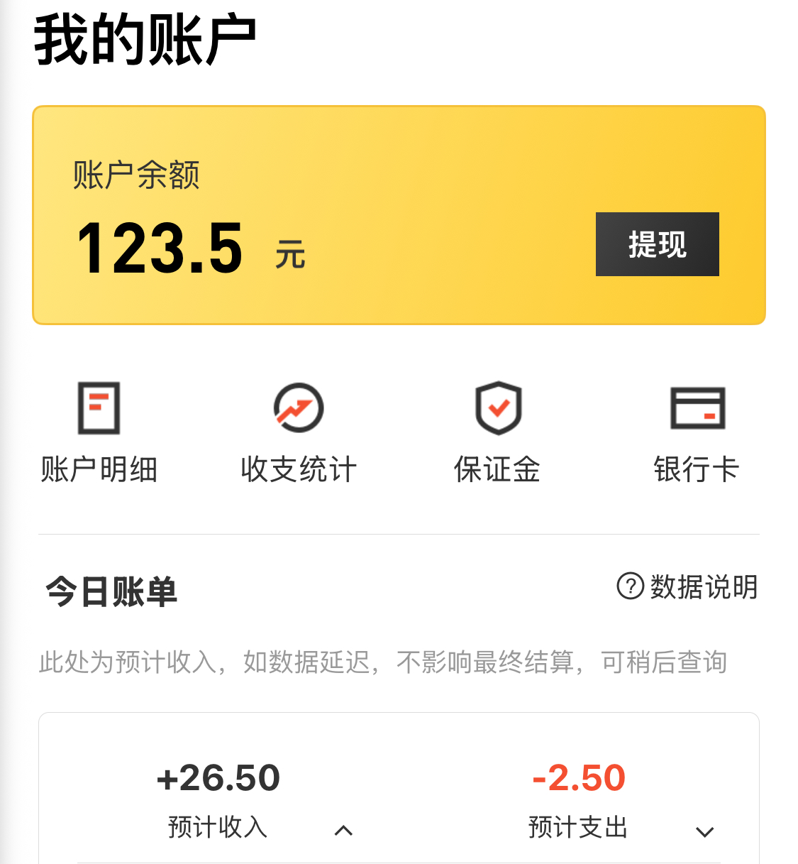 昨晚兼职外卖收入:26.5-2.5=24 哈哈哈哈