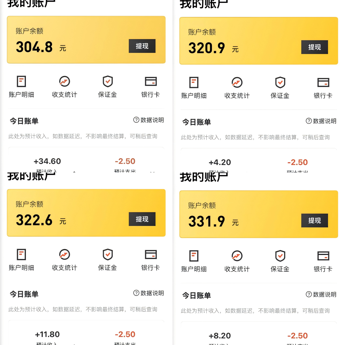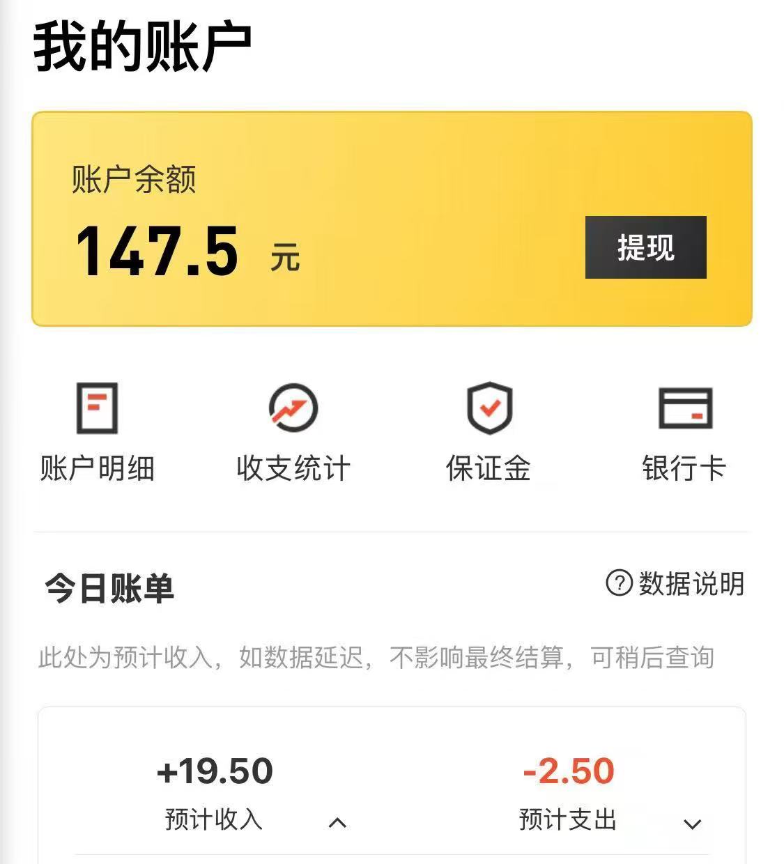 截止到目前,收入反馈:总营收 177.5元,扣除每日 2.5 元的保险支出,累计扣除 27.5 元,实际到手150元。