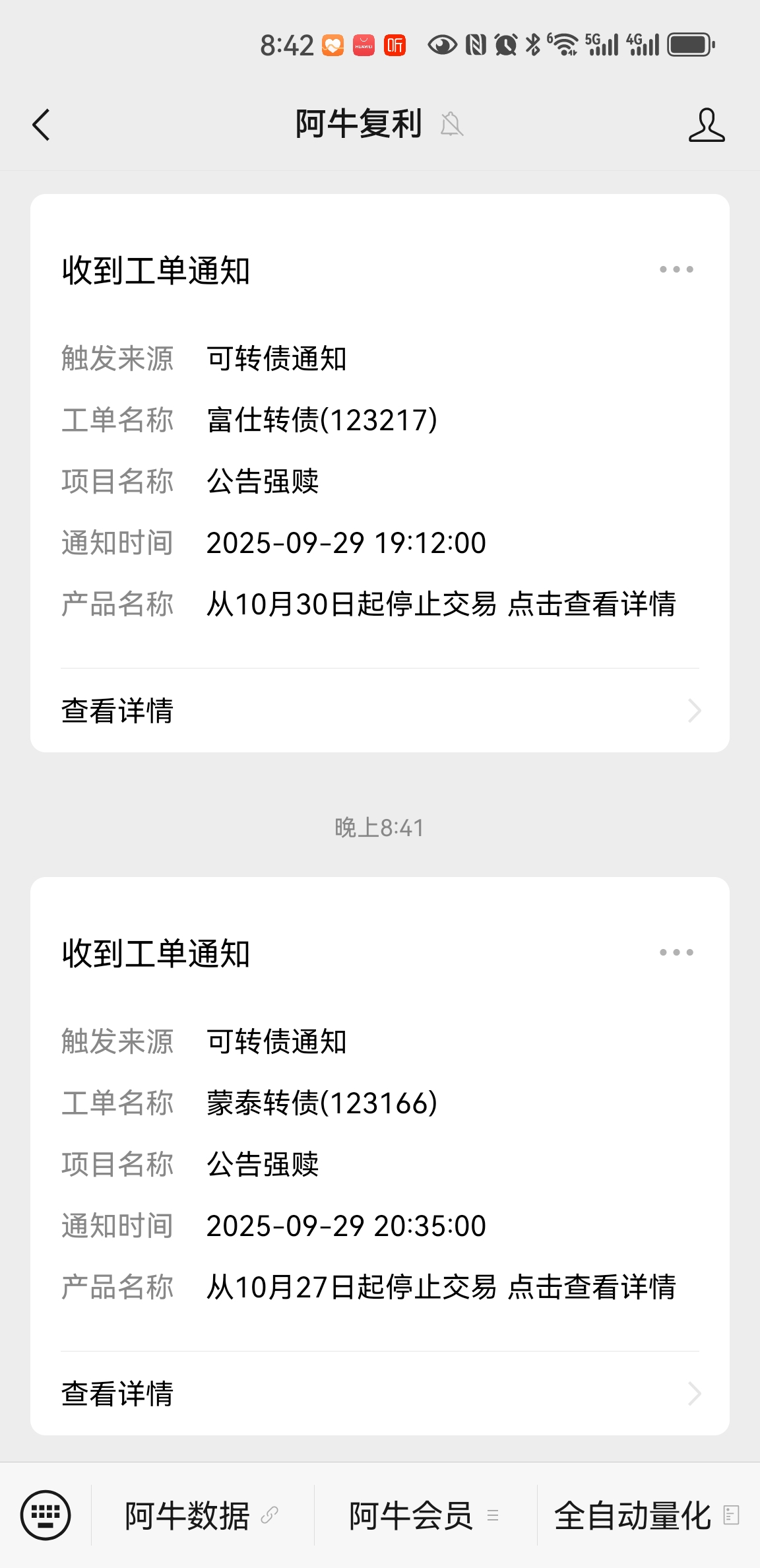昨日平开低走高拉低尾,反N型走法,中幅下跌,转债指数盘整,转债情绪温度保持较高位,今日计划 有T做T 保持仓位;豪24 松原 最后交易日 海泰 最后转股日 冠中 控股股东拟变更为深蓝财鲸,9月29日复牌 中环2 筹划控制权变更事项停牌 南药 白云山附属企业广药二期基金受让公司11.04%股份 再24 风语 减持股份 道生天合:沪深新股 【申购】华夏凯德商业REIT(508091):【上市】 海联讯:公司换股吸收合并杭汽轮获证监会同意注册批复 精工 康医 不下修 浦发 转股2.9亿 万凯 转股8.4千万 汇成 转股7千万 景兴 转股6.2千万 领益 转股5.6千万 豪24 转股3.8千万 鹿山 转股1.6千万 中环2 长集 神马 转股1.3千万 雪榕 科达 转股1千万 今日 新23 富仕 蒙泰 最快差一天满足可能强赎, 今日 无 最快差一天满足可能触发下修。