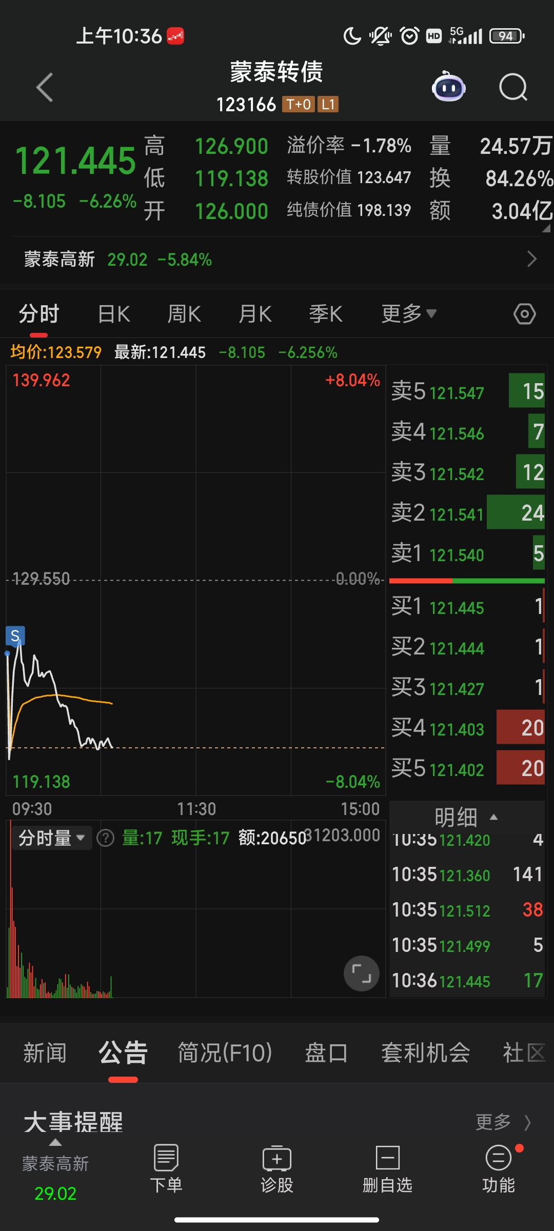 我昨天转股了好多蒙泰,希望今天开盘能跑掉