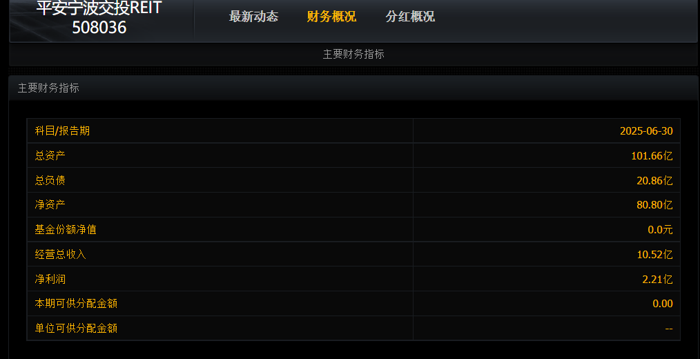 平安宁波交投REIT 508036,杭州跨海大桥基础设施,就是高速公路收费,没有应收账款,全部都是现金结算,目前的价格9.7元,每年四次分红一季度:0.26二季度:0.36三季度:0.34前三季度合计分红:0.26+0.36+0.34=0.96不算四季度分红,按照目前三个季度分红算年化收益:10%如果加上四季度的分红0.3,大约于年收益率:13%以上情况经供参考,投资有风险。REIT 到期后本金到底还不还?