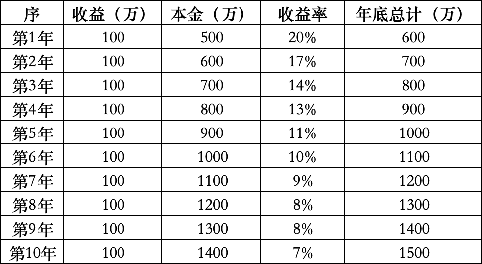 看测算收益率逐年走低的,请问这个设想有没有问题?
