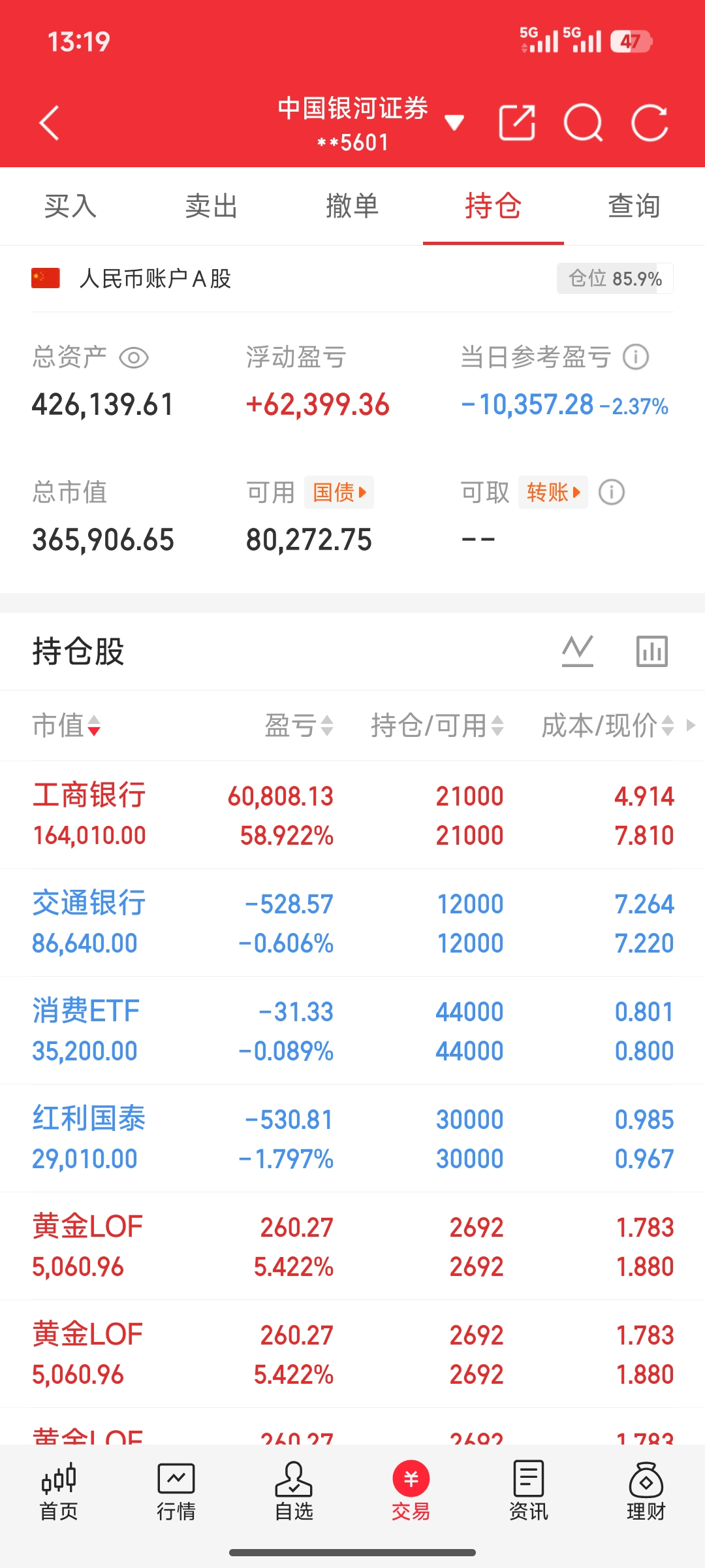 当前资产426139.61元