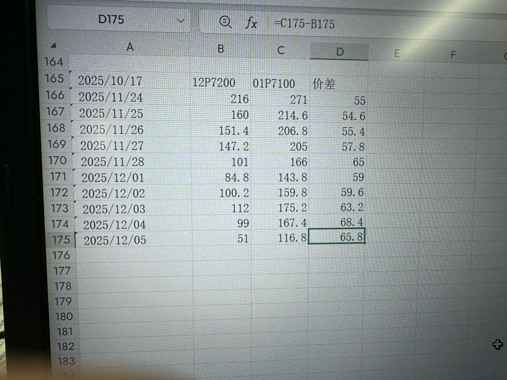 虚值合约只有时间价值啊,没内在价值就不存在贴水问题。MO01-02-7000P平均时间价值也很接近。这样一组水平日历合约赚亏概率应该在60、40左右。上涨会亏的delta的钱,横盘赚很小的theta钱,下跌赚delta的钱+小量theta钱。