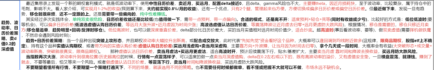 - 我也在继续的思考日历价差的优缺点,适用场景。