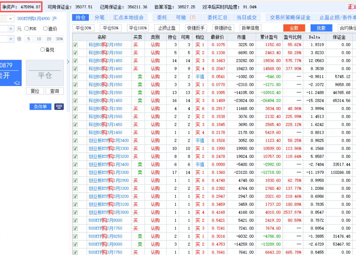 原本是股票账户做多、期权账户偏空来对冲,结果这波股票赚方向、期权赚结构(升波/期限结构),两个账户都盈利。