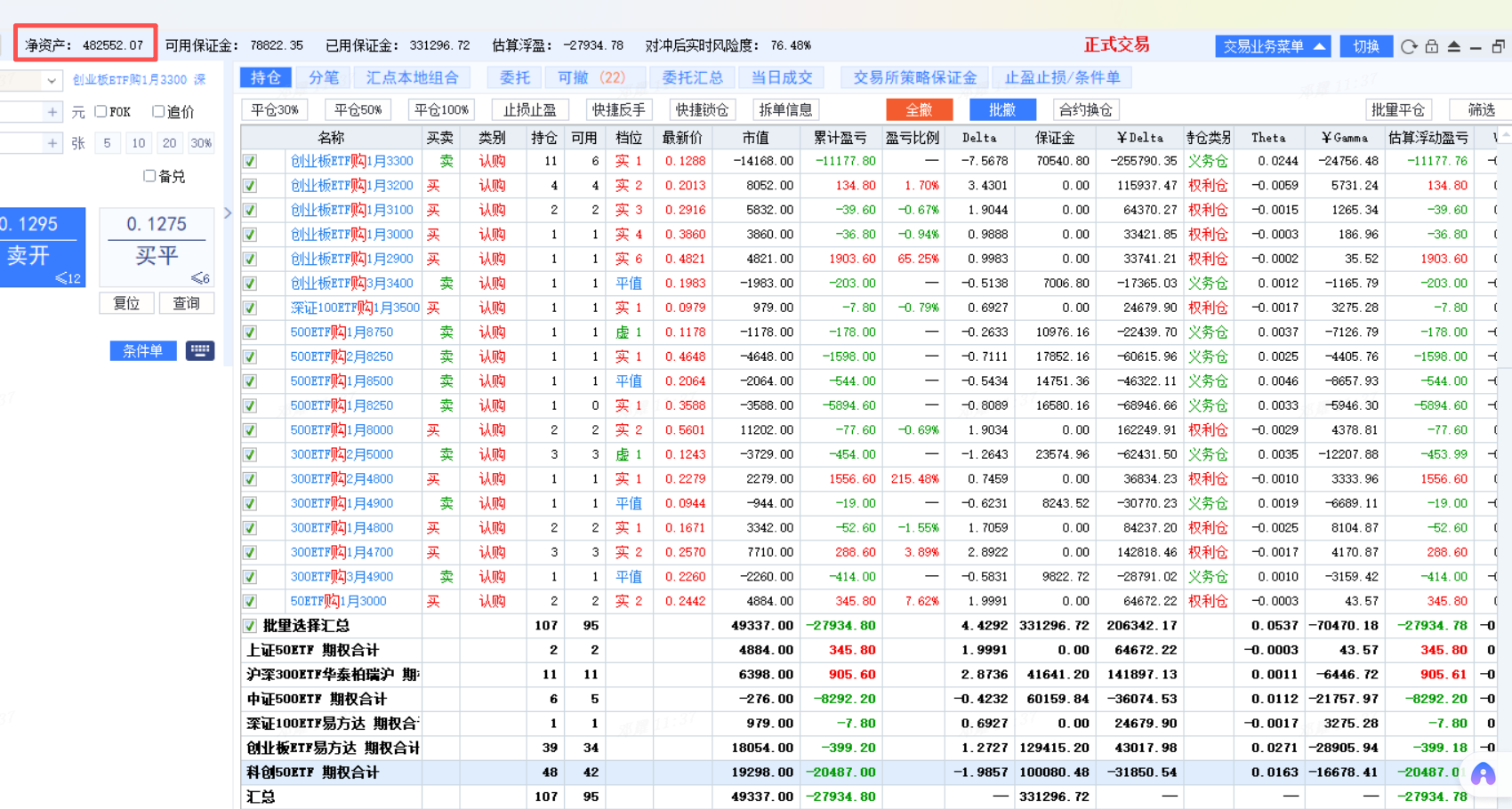 -平仓之前1月的卖方腿(都变深实值购了,这个亏啊)。