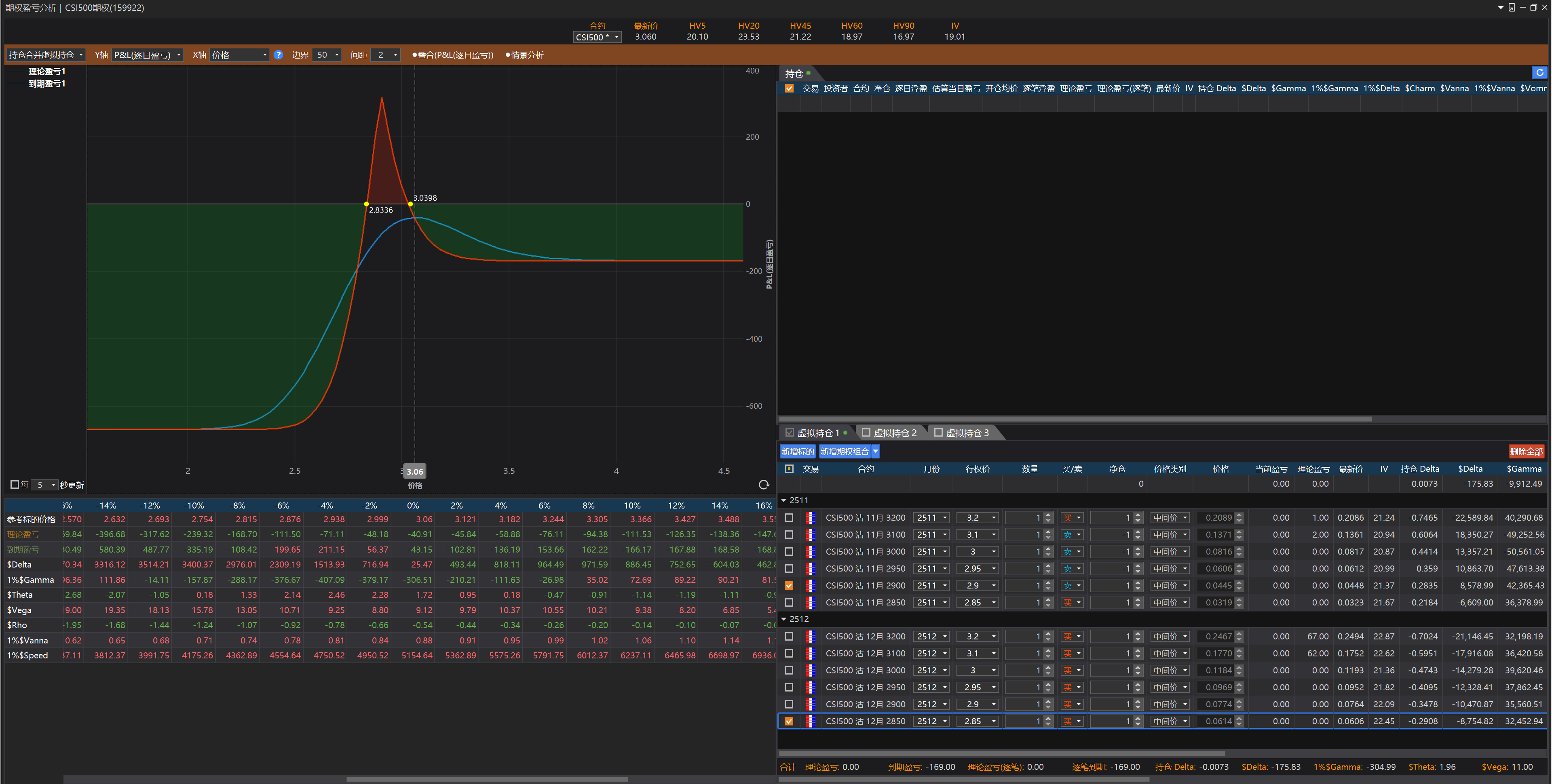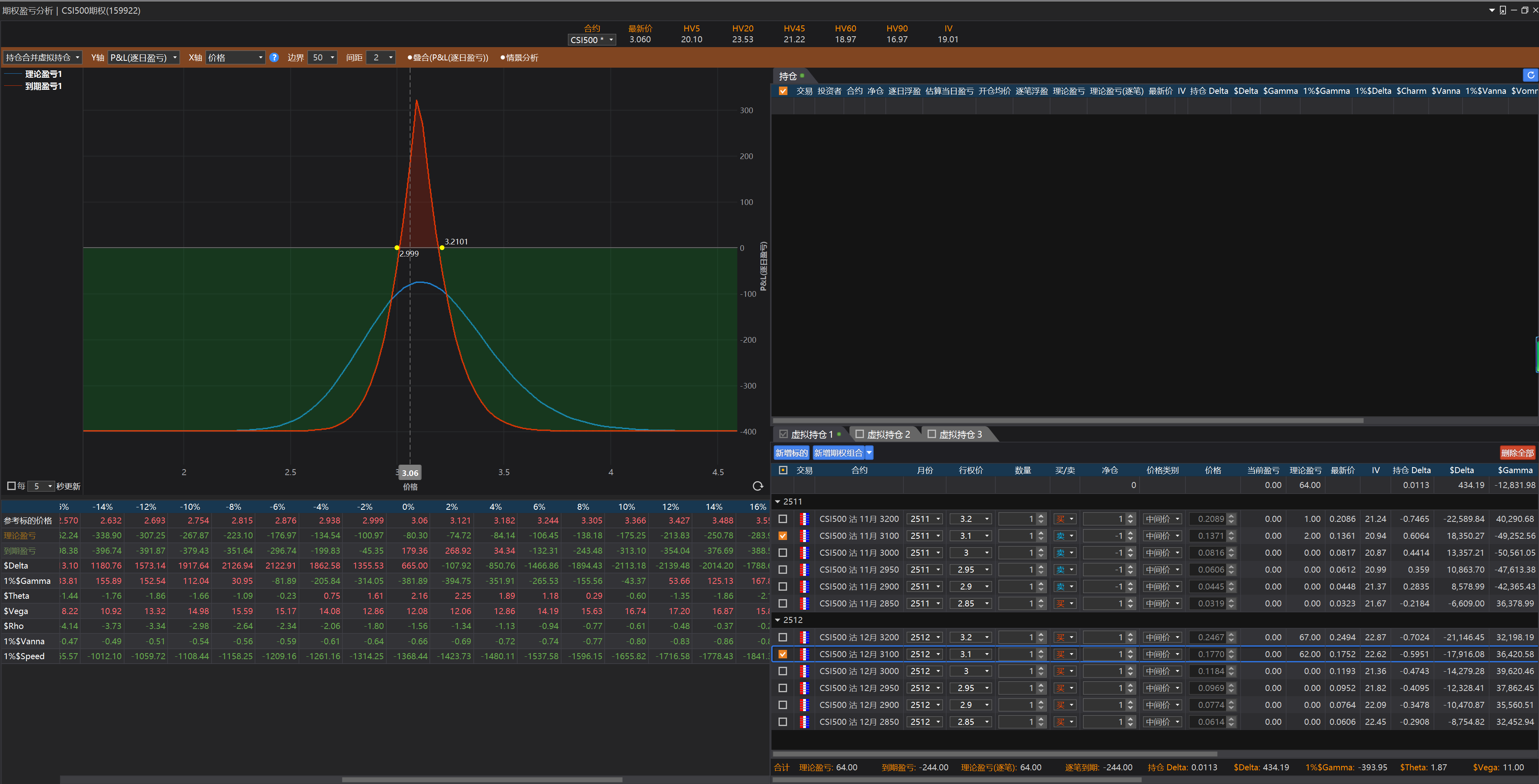 这样就可以自己估计涨跌x%, 波动率变动y% 等情况下持仓的损益。