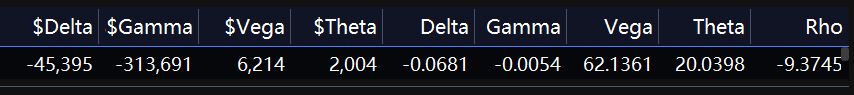建议你自己计算持仓的delta cash,gamma cash,vega cash, theta cash