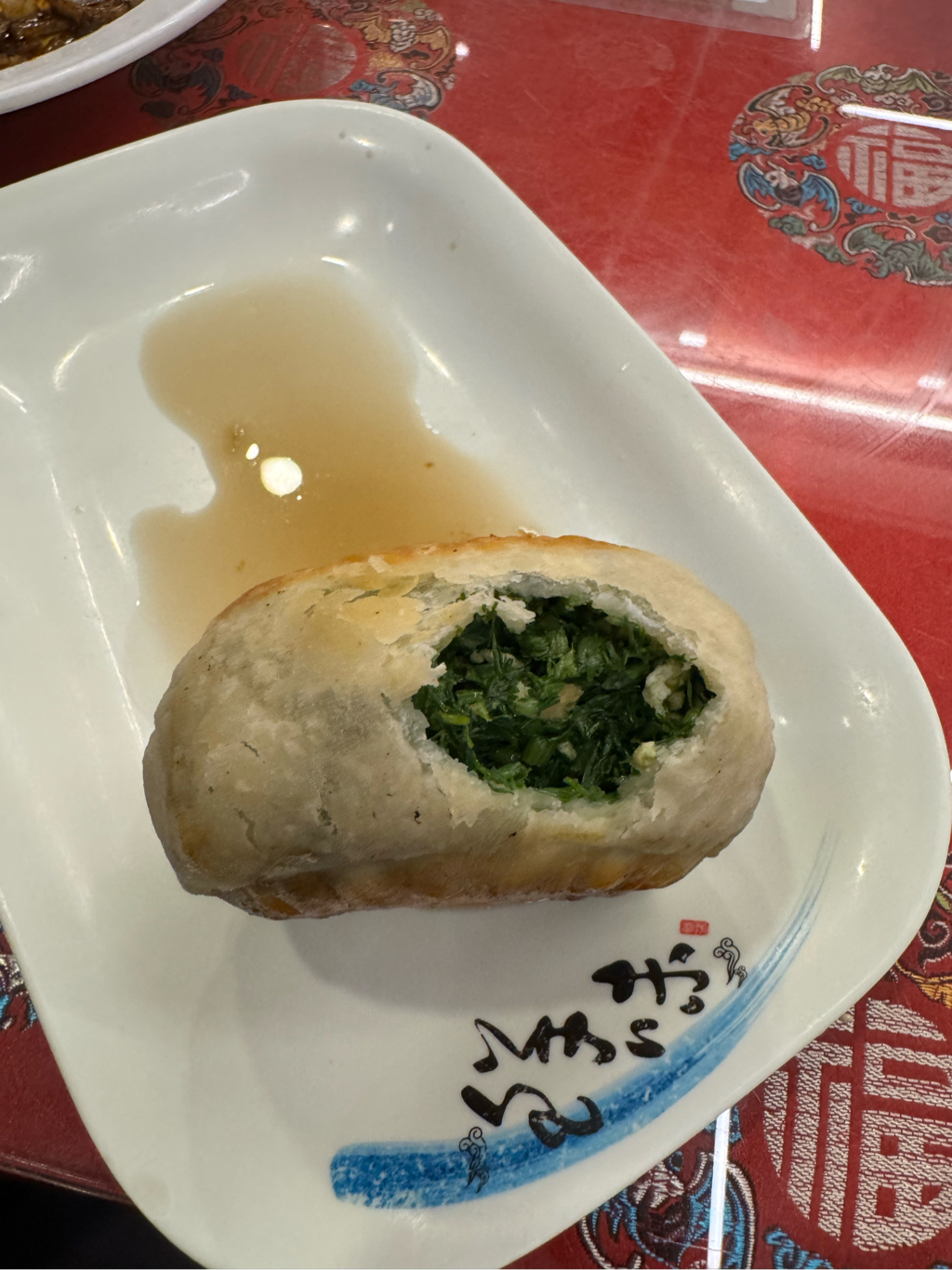 吃了挺久,馅饼还没来,我问服务员怎么馅饼还没到,他们说这是现烙的大概25分钟,最后菜快吃完了馅饼才到