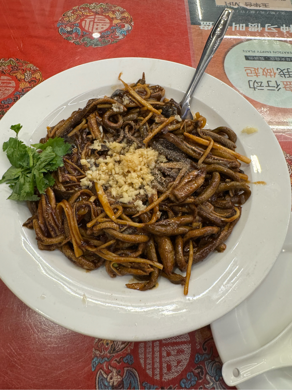 孩子上课我送到了还没吃饭,附近搜了一个比较有名还没吃过的饭馆,点了一个特色菜响油鳝糊,一个茴香馅饼