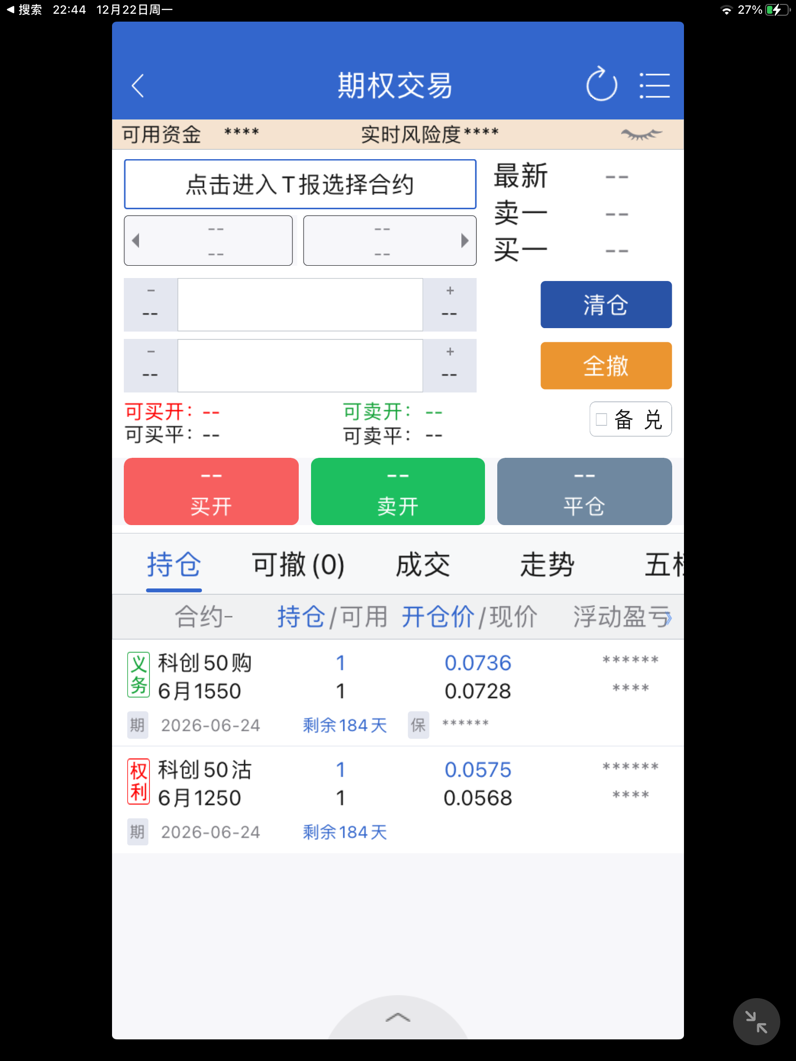 12月22日38元买入1手科创50沽1月1250。12月26日现价是18元。假如现在卖出平仓,亏损20元。