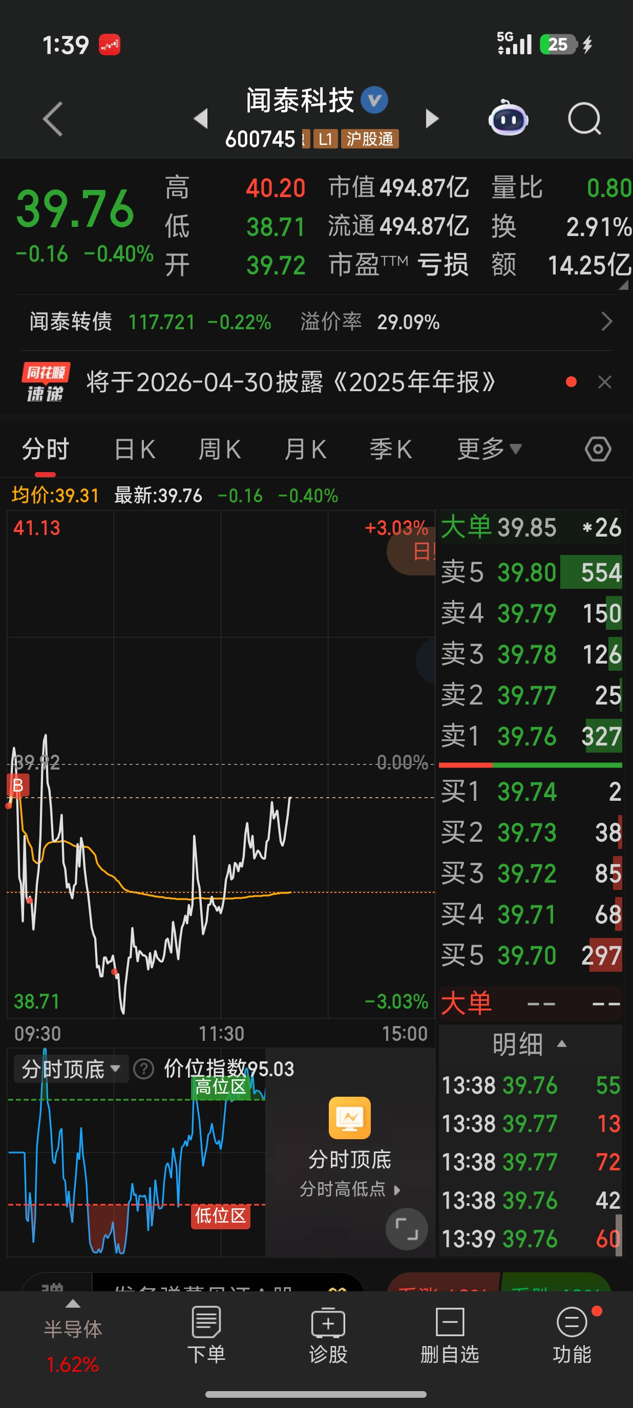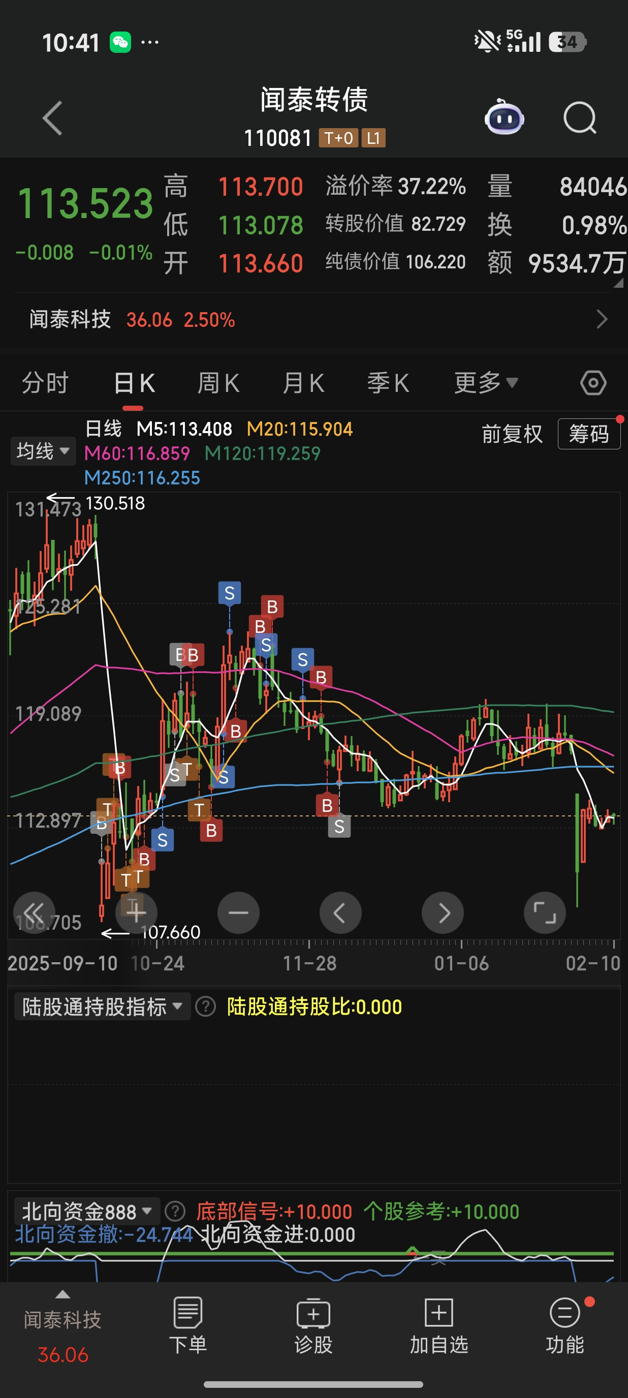 我个人也觉得闻泰转债今天卖出挺对的,闻泰正股回到当前的股价,继续上行回到之前高点甚至突破的压力很大;但是呢,我又觉闻泰转债走到当前地步,向上弹性大向下也抗跌,再加上有5-6块钱的利润,感觉留着格局性价比也不错,索性就放着格局吧。我今天还加仓了360张。