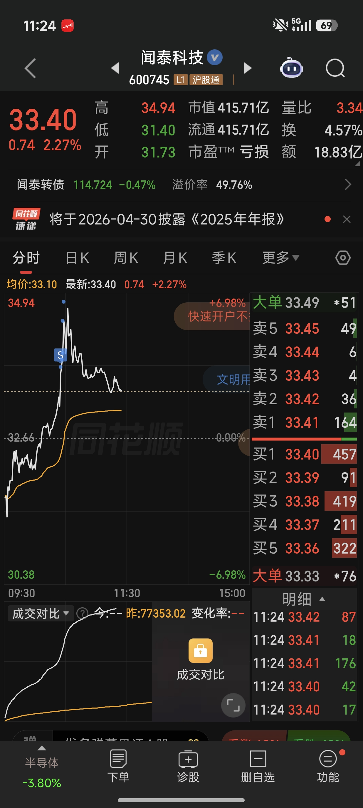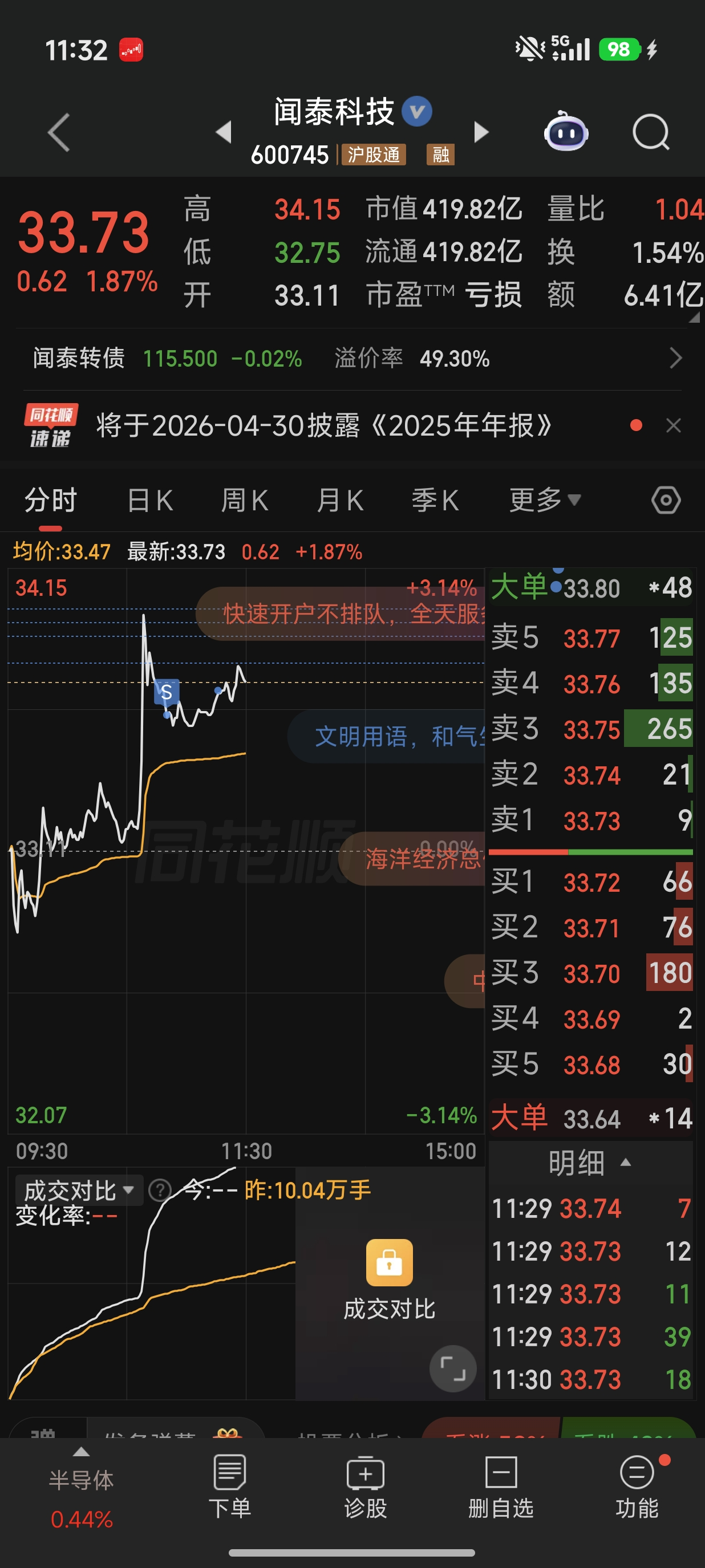 首先恭喜你们赚钱了,有没有人帮我解答一个疑惑:闻泰转债到期赎回价是108,剩余本息是109.8,10月14日股价一字板封在跌停37.65,转债价格大部分在110左右,转股溢价率在27%左右,我的疑惑是,假设公司还款没有问题,在109.8元以下买入闻泰转债,是不会亏钱了,最差情况就是到期还钱嘛,但利从何来?在到期前要赚钱,需要转股价值涨到109.8元以上,也就是预期股价涨到48元,而今年这轮芯片牛市...这个,可能还是和各人的风险偏好不同有关。