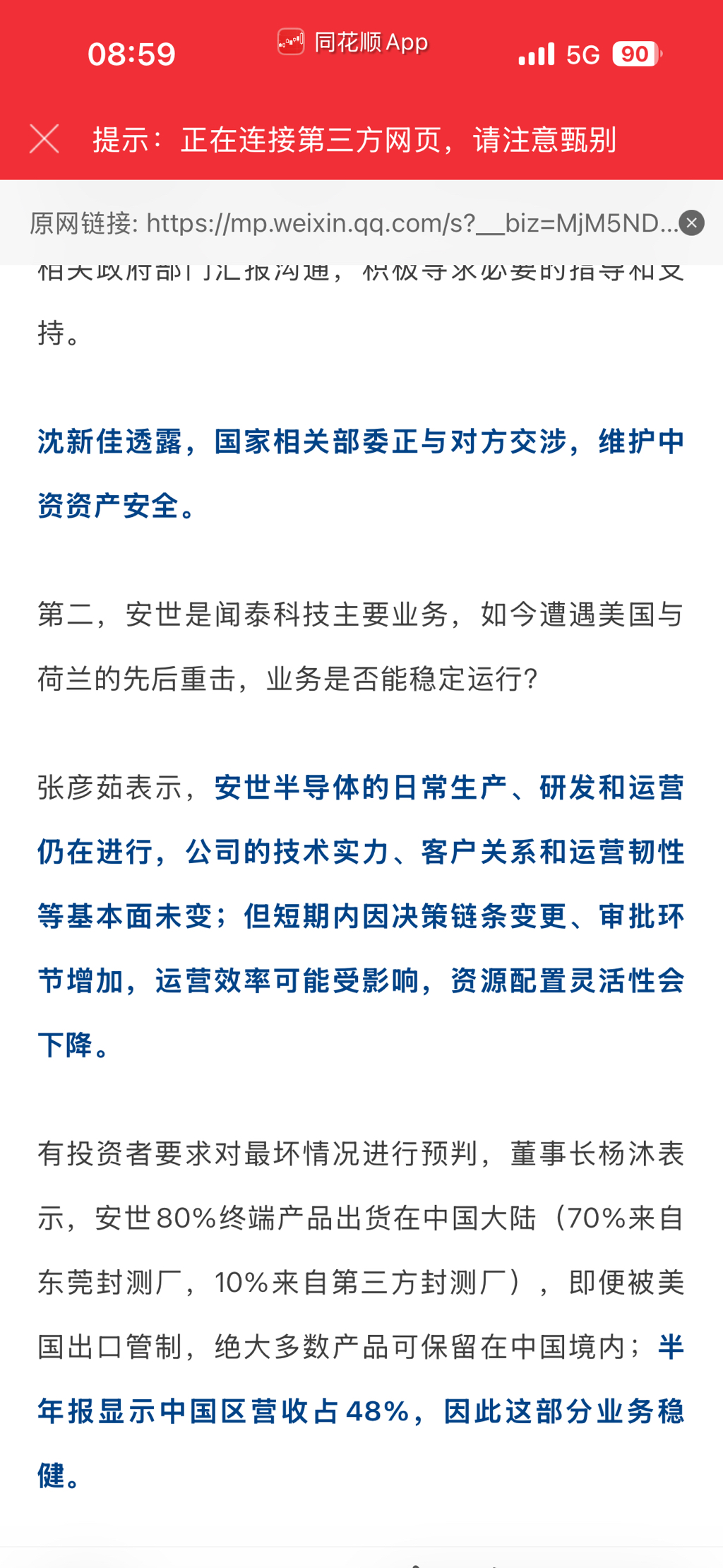 我觉得荷兰不敢,也不会有其他企业收购安世的,要知道安世一半产能销往国内,并且主要产能也在东莞,我们是不怕真打的,这个事件最后走向会是保证安世的独立性以及加大在欧洲投资。