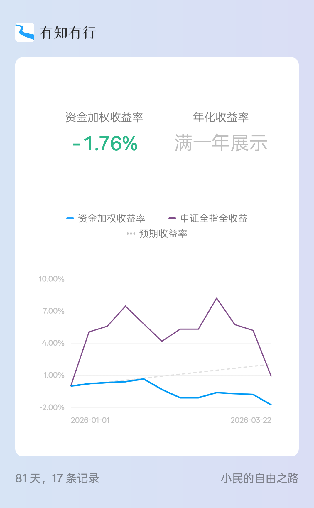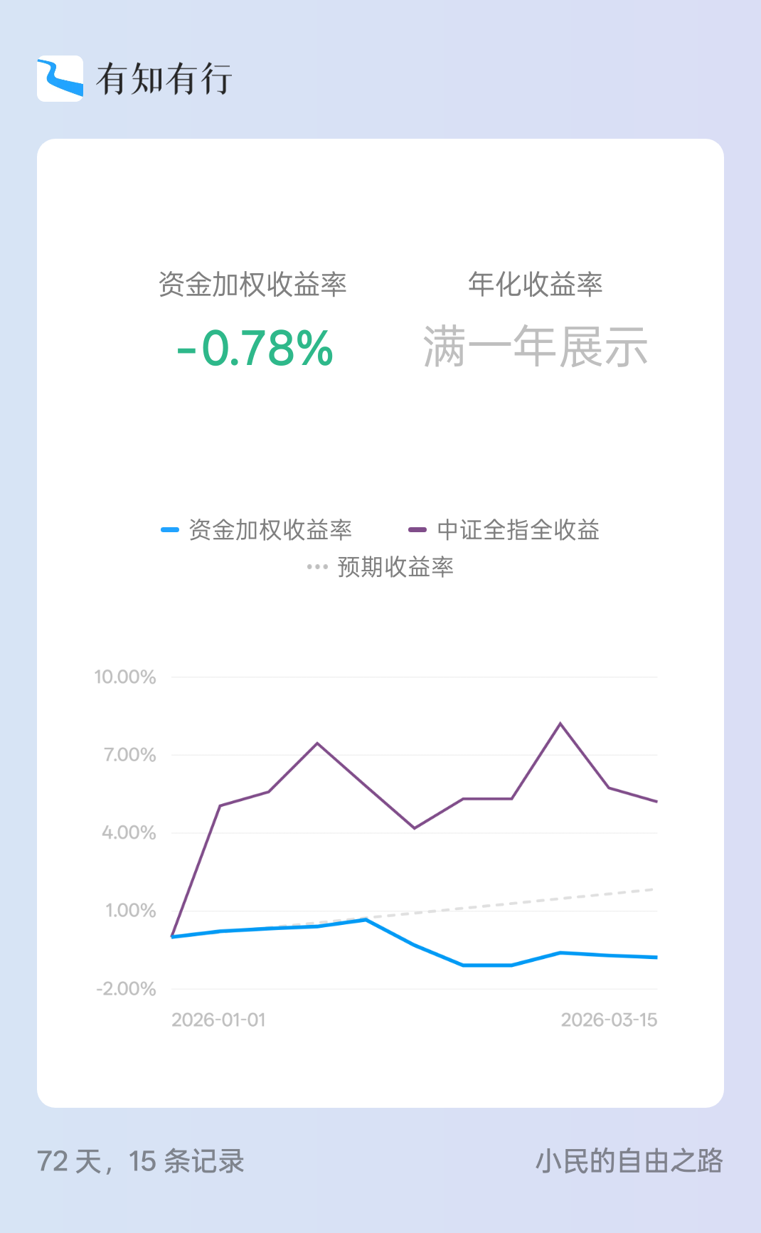 时刻做好资产回撤50%的心理准备。每周重温原则,若系统性风险真的来临,我将如实记录自己的心理活动和操作。