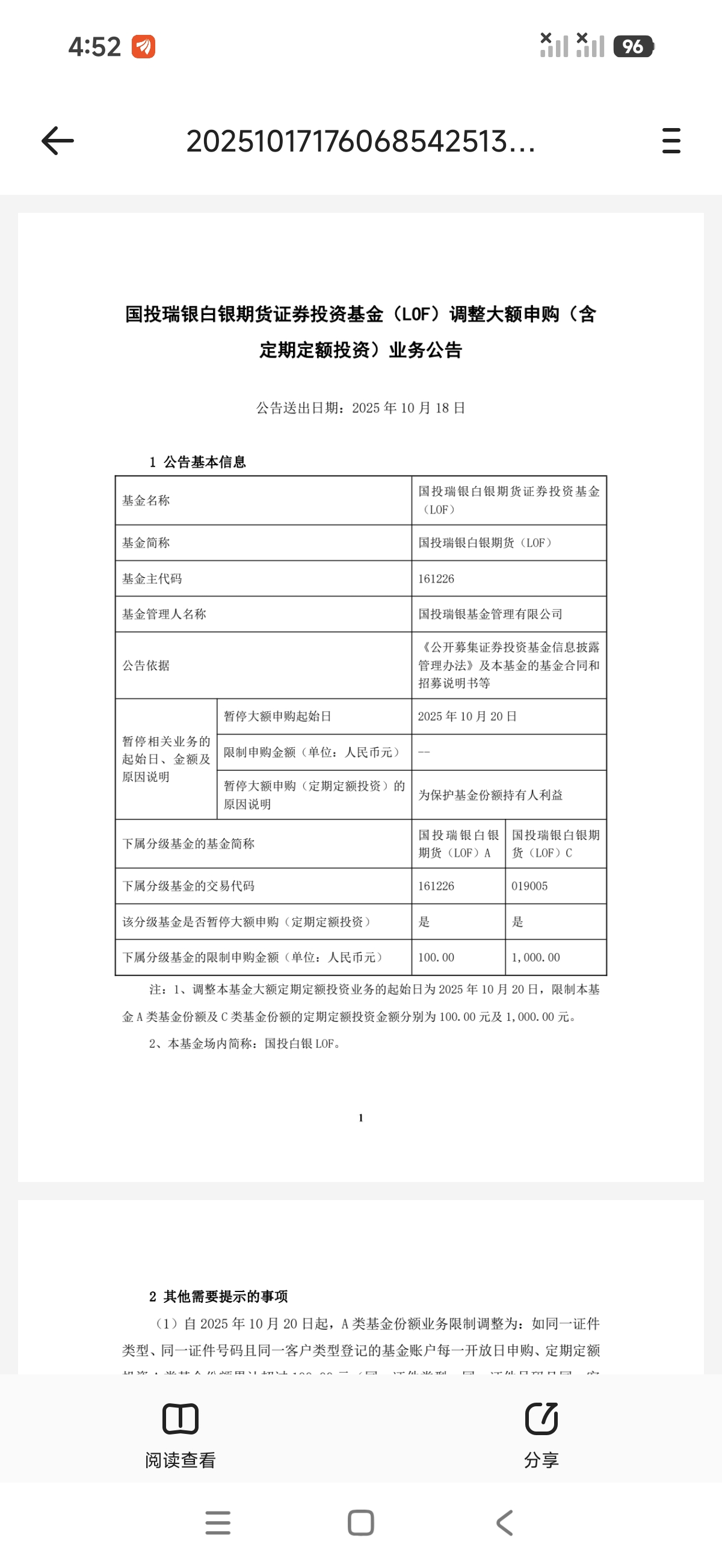 不同意鸭蛋的说法。就像他说的,十几年前lof遍地都是,现在还有成交的有几个?能活下来有成交量,反而成了罪过?什么叫设计有问题?过去一年跟踪误差并不是很大。还有些人更是莫名其妙,要去投诉。投诉谁,投诉什么?其他lof基不也存在套利?有套利就投诉?以前不知道这个基金,论坛里也没看过帖子,只在群里听人说过,那时场内申购已经降为1万。绝大部分套利都是容量的,论坛分享肯定是导致方法失效。其他的基金是基民情绪问题导致折溢价,引发套利行为,套利行为会让价格回归合理。但白银基金是设计问题,导致不断出现套利行为,套利行为并不会导致基金价格回归合理,只伤害存量份额,并产生巨额的申购赎回耗损。令整个参与的基金的基民整体每年亏损严重。