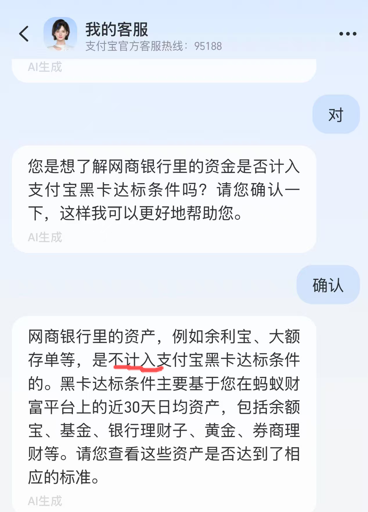 支付宝黑卡我感觉就只值一杯咖啡钱,其他的东西都要靠定闹钟抢余利宝现在每天转出额度也变成了1W,网商活期就能大额。还不如逐月轮动各银行的提升资产。很小气的,话费要50起步减免了。以前实付1块多能有10块的话费