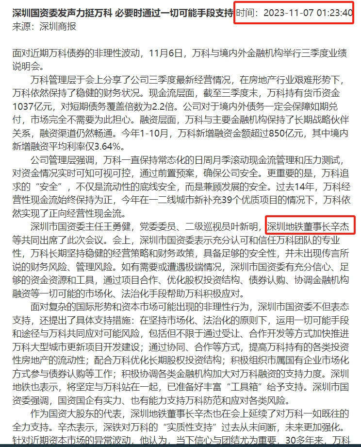 只要深铁还输血,那万科还能勾下去,以时间换空间; 一旦不再支持,肯定立马切分优质资产,万科立马变药渣。