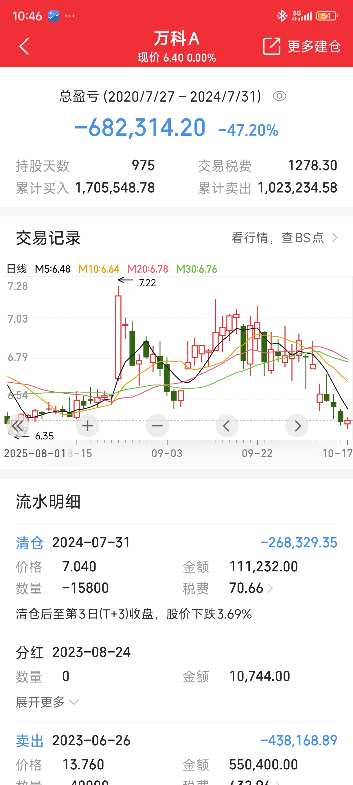 股价跌了并不代表公司有问题看年报,利润跌了,公司肯定就有问题了2020年利润415亿2021年利润225亿2022年利润226亿2023年利润121亿2024年利润-494亿即使一个不懂股票的人,看到万科赚的钱越来越少,也知道公司出问题了吧一个公司生产的产品价格越来越低,这个公司经营会越来越好?还是越来越差?用常识就可以判断,再举一个反例,好多人都说茅台不行了,看看茅台的利润2020年利润466...冷知识,恒大12到18年利润年年上涨,19,20年年略微下降但仍然有16年利润的将近两倍。但如果你看利润不错买恒大股票的话,然后就没有然后了。