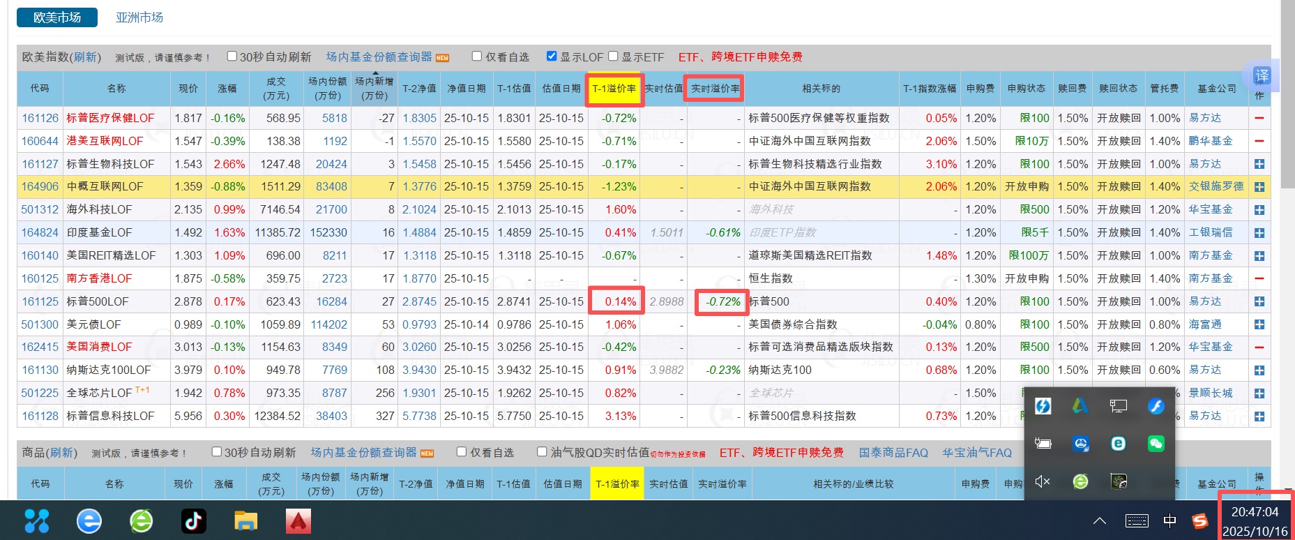 白天美股闭市,实时的折溢价 应该就是t-1日的折溢价吧?