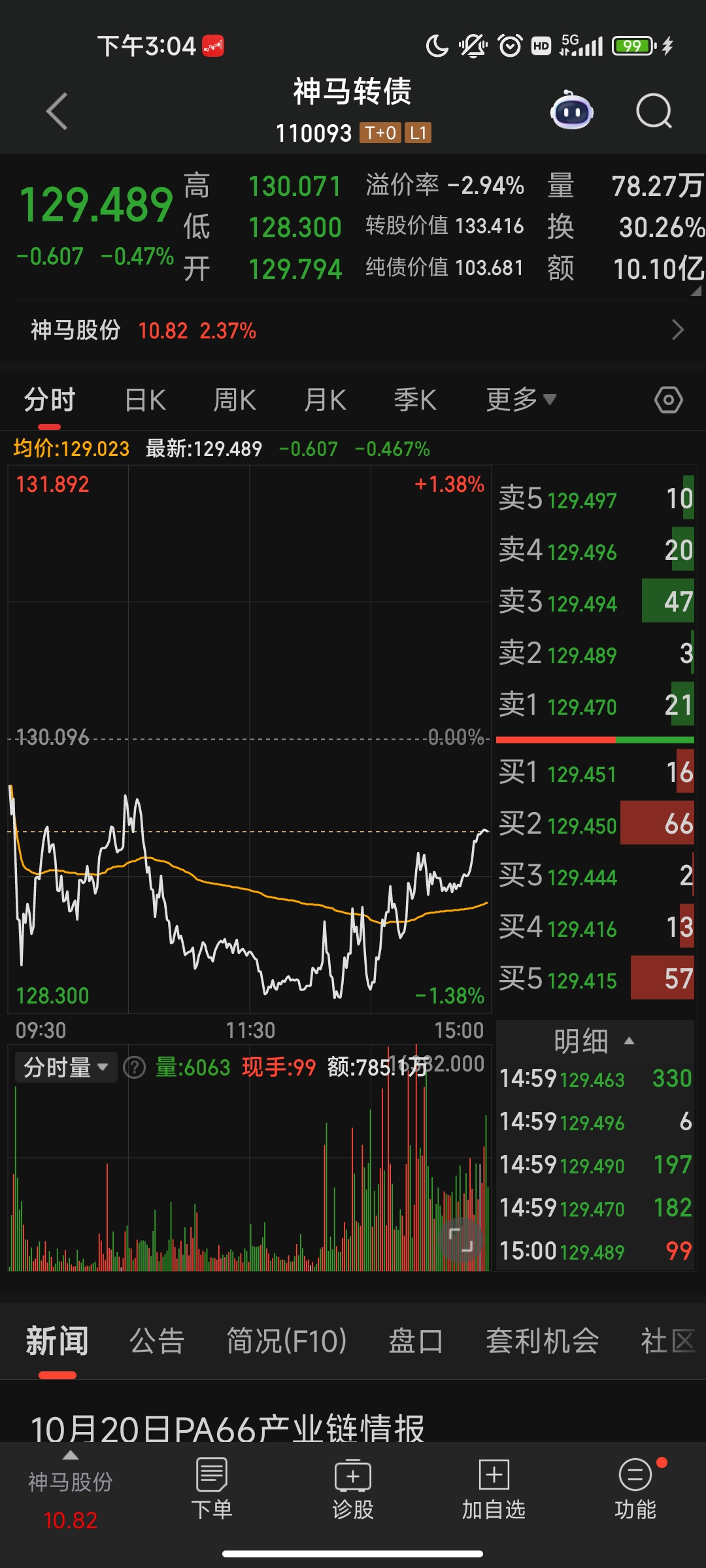 尾盘 杀入了股票,4个交易日。 上130转股价值即可强赎回。