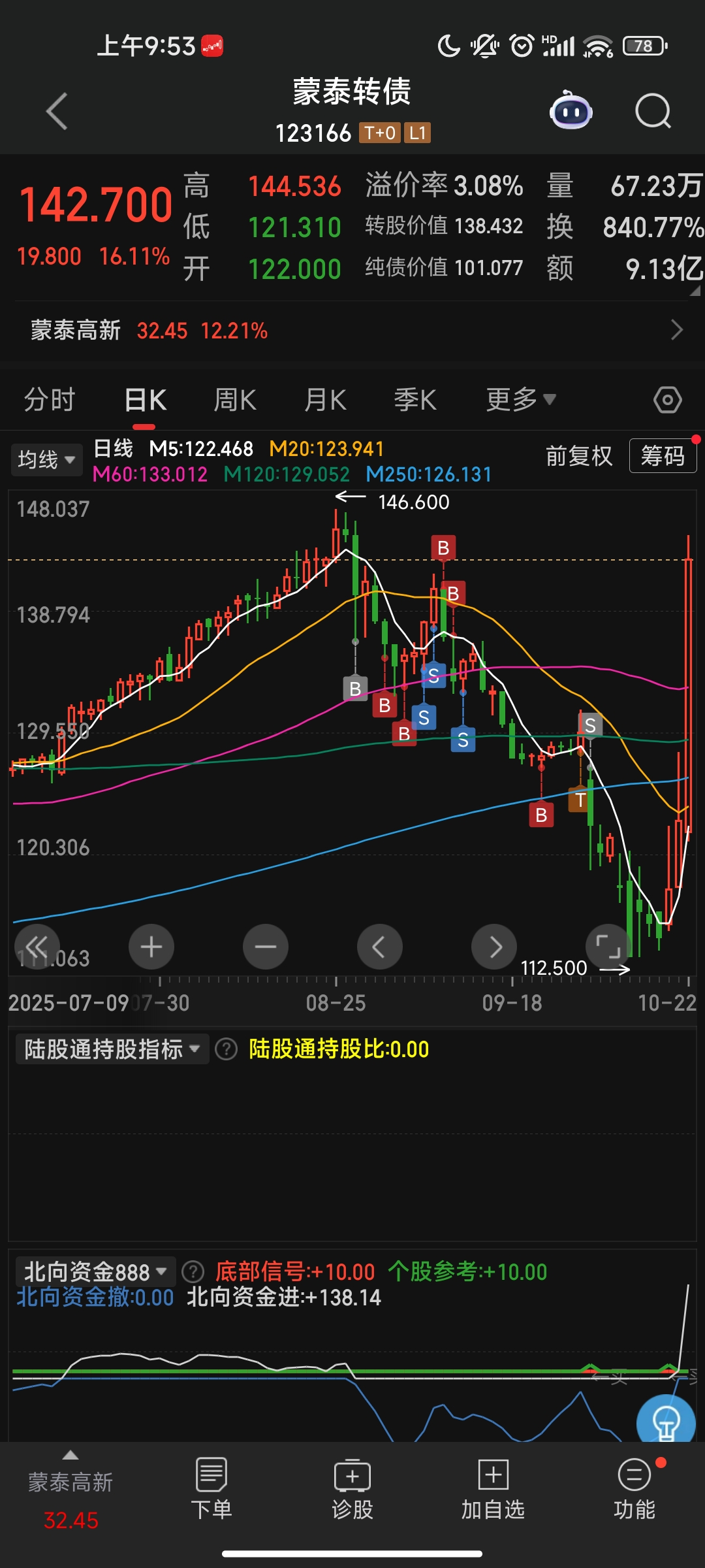 神马应该参考蒙泰高新的操盘方式,蒙泰高新最高的转股价值也才134,但他就是能达到15天。