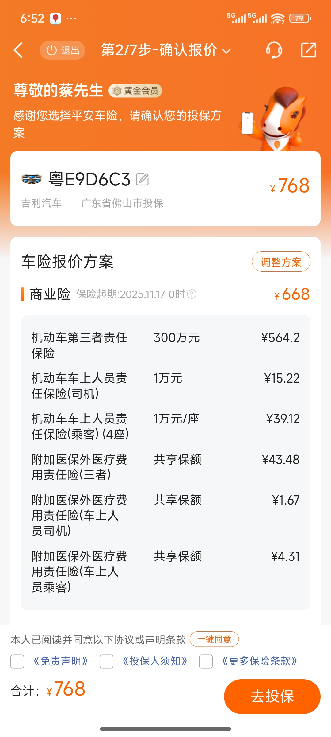 但是你这个费用,是包含了交强险+车船税的费用吗?
