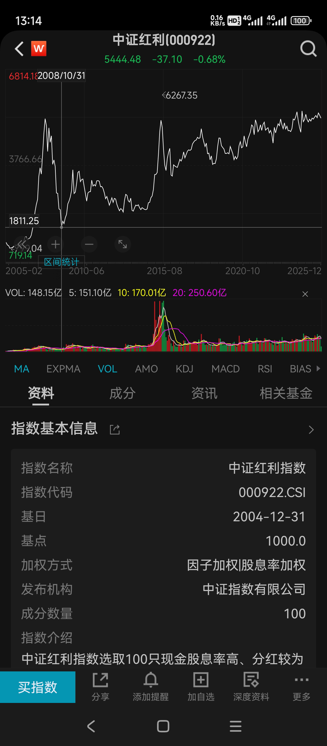 作为一个长期年化收益率低的业余小散户,我是把中证红利当做底仓的,也是当做存款和债券基金的替代品的。不一定对,可以留待三五年后我再回头检验正确性。
