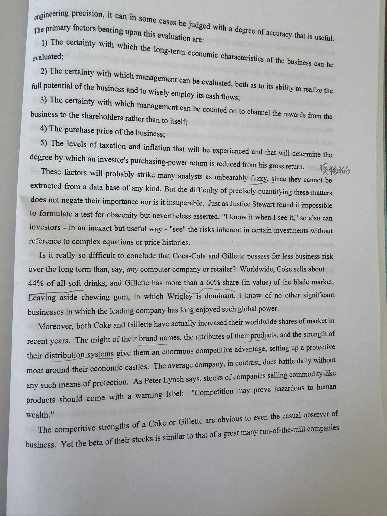 我有时候觉得人也算是独特的护城河,虽然这种护城河也是有时效的,毕竟人的寿命有限。比如华为的任总、比如企鹅的小马哥、比如马斯克、比如巴神他自己,这种护城河其实在有限的时间里非常深厚。但是这种护城河对于投资者来说,几乎没有可能在早期就被发现。帅妞说的太阳纸业,其实护城河其实并不在于其规模,因为造纸行业的产能还是太分散了,能走到今天,是需要感谢宏信总,在别人多元化的时候,太阳踏踏实实的造纸,在别人盲目上产能的时候,他去东南亚种树,我觉得也算是企业家带来的护城河吧。