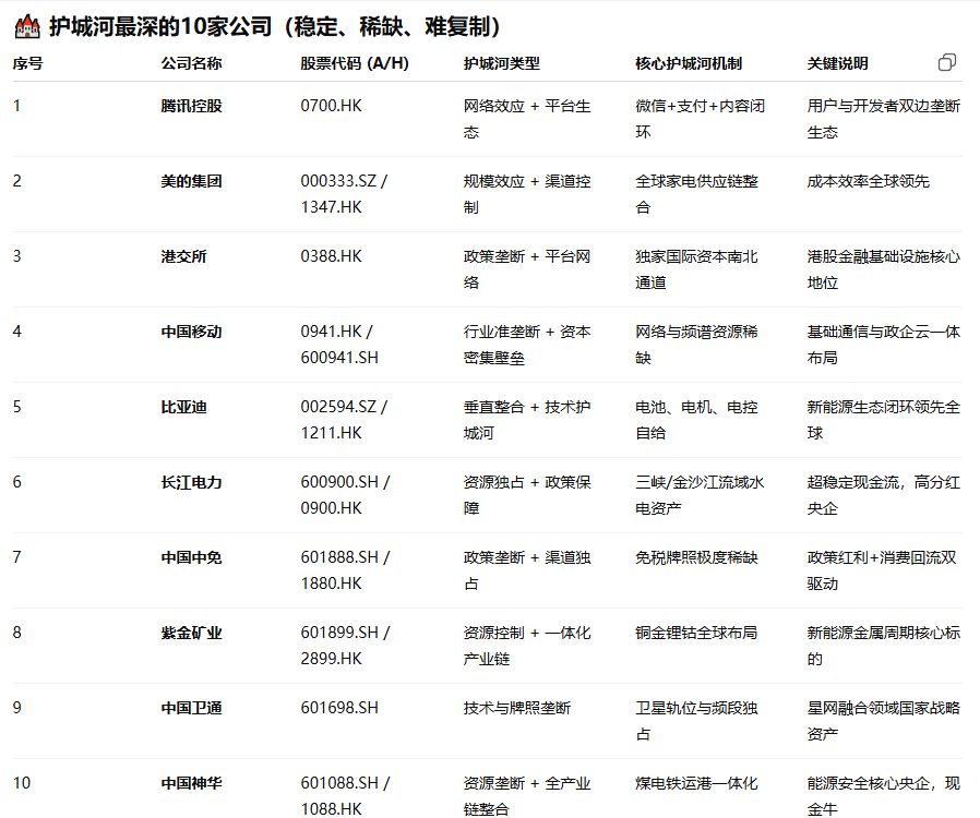 我将严格遵循其原则——即寻找那些业务长期经济特征确定、具备强大护城河、管理层可被信赖、且价格合理的公司——为您在A股和港股市场筛选出不少于5家符合标准的上市公司。这些公司未必在短期内涨幅最大,但它们共同的特征是:拥有极高的概率在未来的5年、10年甚至更长时间后,依然强大且更具价值。巴菲特的选股框架与A股/港股实践首先,我们将图片中的核心理念转化为可执行的筛选标准:强大的长期经济特征:所在行业需求...留个爪