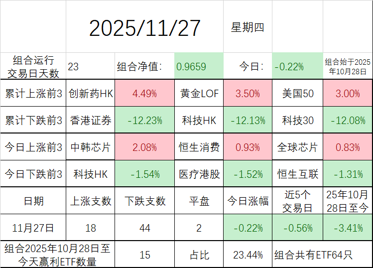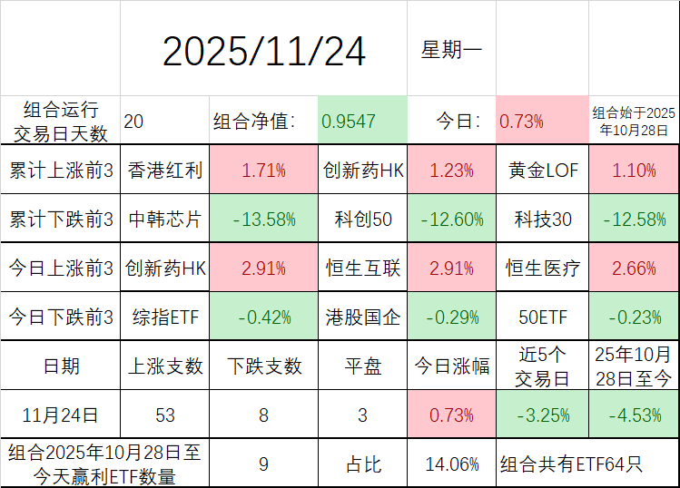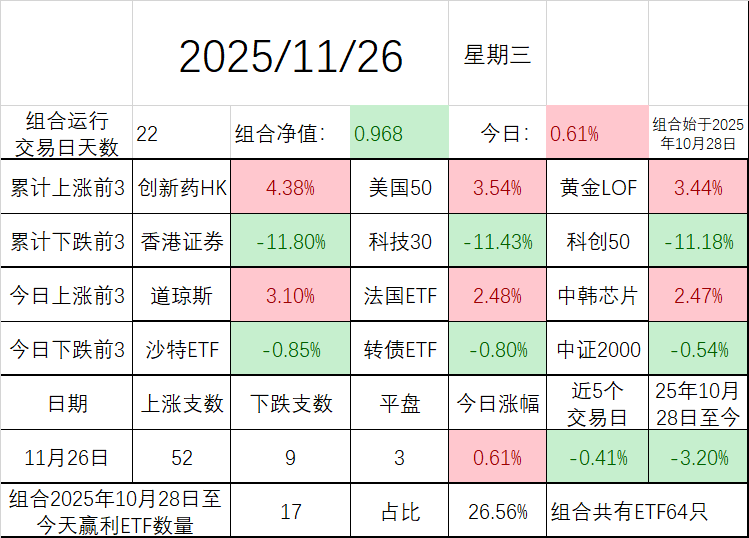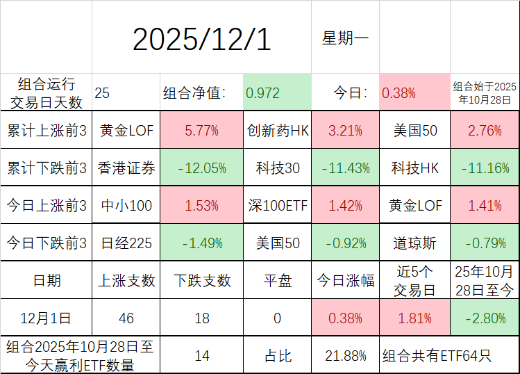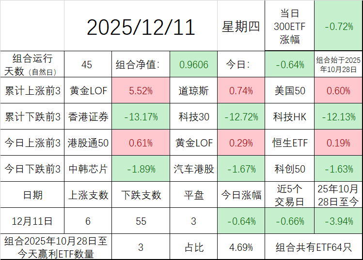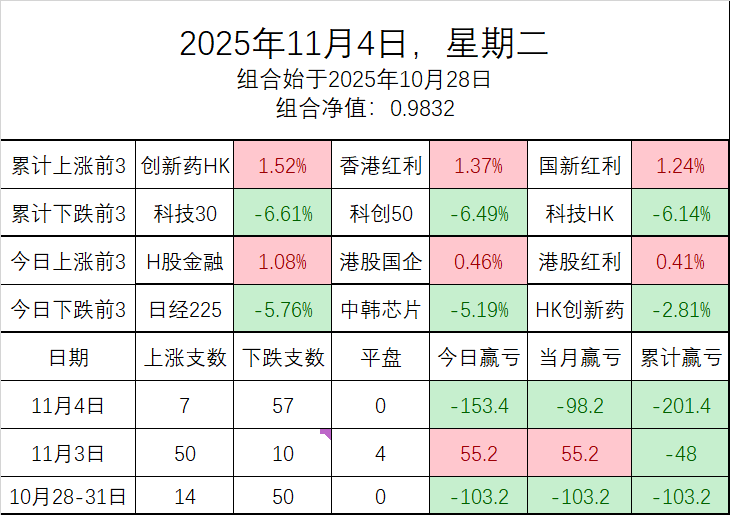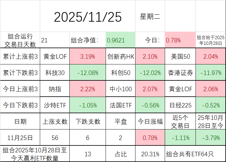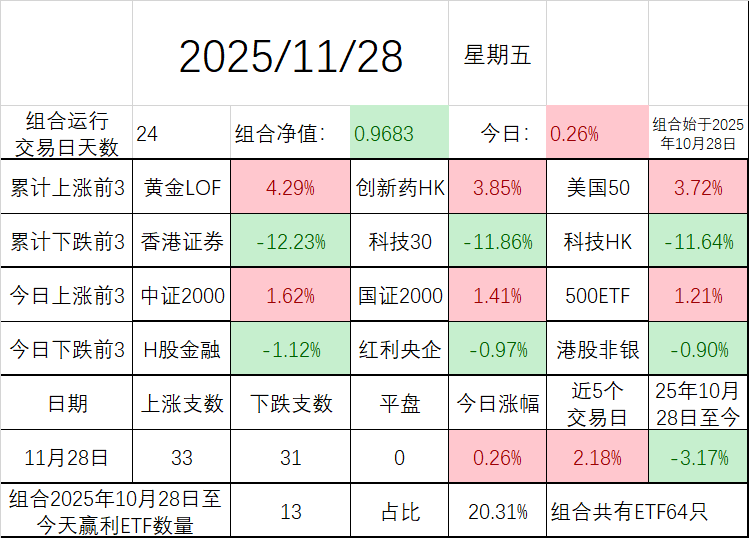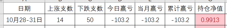 2025年10月28日,最小持仓量(100)建仓64支主要指数基金,观察每日上涨家数,下跌家数,每日赢亏本,月度,年度赢亏
